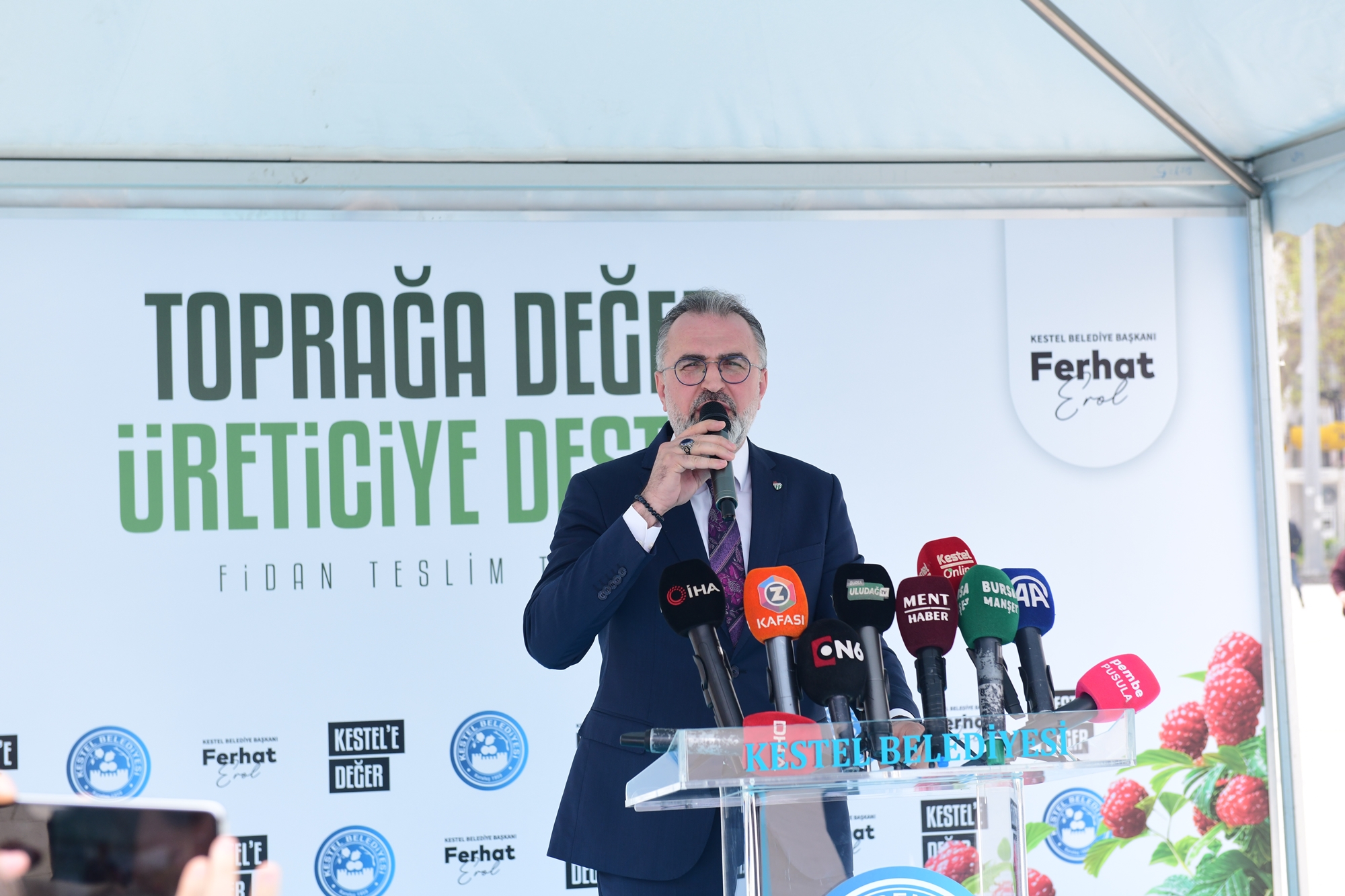 Tarım şehri olarak bilinen Bursa’nın Kestel ilçesinde, Türkiye’nin tarımsal üretim vizyonunu güçlendirmeyi hedefleyen önemli bir proje hayata geçirildi. İlçede ahududu üretimini artırmak ve Türkiye’nin dünya pazarındaki payını güçlendirmek amacıyla 6 tarım kooperatifine toplam 6 bin ahududu fidanı dağıtıldı.Meydan Kestel’de düzenlenen fidan teslim töreni, Kestel Belediye Başkanı Ferhat Erol’un ev sahipliğinde; Kestel Kaymakamı Recep Öztürk, AK Parti Bursa İl Başkanı Davut Gürkan ve çok sayıda üreticinin katılımıyla gerçekleştirildi.
