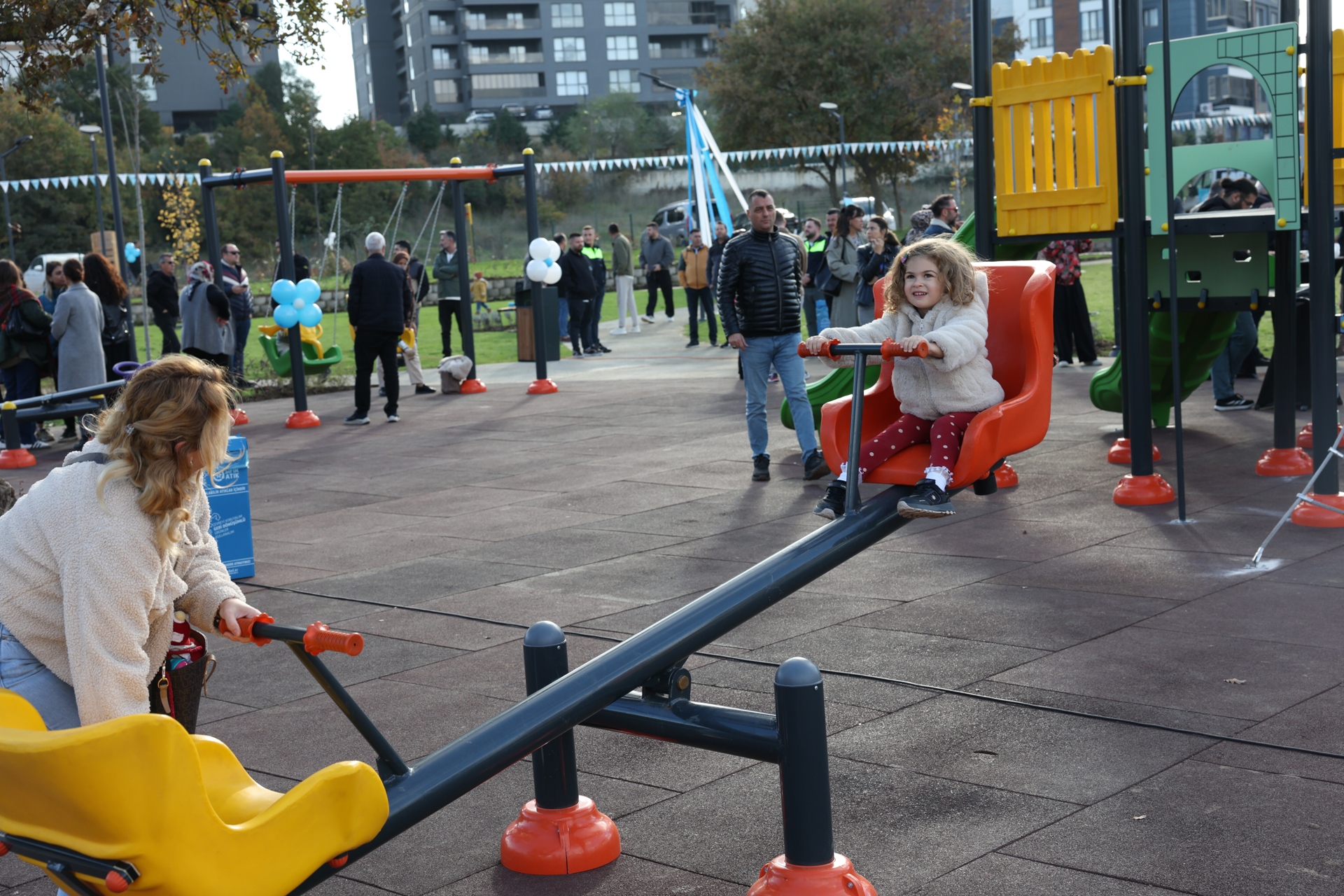 verdi. Parktaki çocukların ‘Başkan’ tezahüratları üzerine konuşmasına ara veren Başkan Şadi Özdemir, “Bu parkları sizler için yapıyoruz” cevabını verdi.