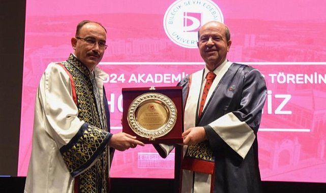 Bilecik Şeyh Edebali Üniversitesi 2023-2024 Akademik Yılı açılış törenini Şeyh Edebali Kültür ve Kongre Merkezinde coşkulu bir programla gerçekleşti.Pazaryeri Gündem / BİLECİK (İGFA) - Bilecik Şeyh Edebali Üniversitesi'nin akademik yılı açılış törene; onur konuğu olarak teşrif eden Kuzey Kıbrıs Türk Cumhuriyeti (KKTC) Cumhurbaşkanı Ersin Tatar'ın yanı sıra, devlet ve il protokolünden çok sayıda davetli katıldı.Saygı duruşu ve İstiklal Marşımızın söylenmesi ile başlayan tören; yan flüt ve piyano müzik dinletisi ile devam etti. 1,5 ayı aşkın süredir Filistin'de yaşanan vahşete vurgu yaparak sözlerine başlayan Rektör Prof. Dr. Şükrü Beydemir; iki gün önce 20 Kasım Dünya Çocuk Hakları günü olduğunu hatırlatarak "Kelimeler bazen gerçekten kifayetsiz kalıyor." dedi.Üniversitede yapılan bilimsel, sosyal ve kültürel çalışmalara dair bir sunum yapan Rektör Beydemir, üniversitenin gerek yurt içi gerekse uluslararası düzeyde elde ettiği başarıları dinleyicilere aktardı. Web Of Science, Scopus, Times Higher Education (THE) gibi akademik ölçütlerin yanı sıra; Green Metric gibi sosyal ölçütlerde de Üniversitemizin geldiği noktaların altını çizen Rektör Beydemir, "Bu başarılarda pay sahibi olan tüm paydaşlarımıza ve kıymetli mesai arkadaşlarıma şükranlarımı sunuyorum." dedi.TATAR'A FAHRİ DOKTORA DİPLOMASI TEVDİ EDİLDİSenato Kurulu'nun aldığı karar ile KKTC Cumhurbaşkanı Ersin Tatar'a Fahri Doktora Diploması tevdi edildi.Cumhurbaşkanı Tatar'a; "KKTC'nin uluslararası ilişkiler alanındaki menfaatlerini korumakta gösterdiği gayretler ve Kıbrıs Türkünün onur ve haysiyetinin uluslararası toplum nezdinde muhafazasına verdiği müstesna katkılardan dolayı" kendisine tevdi edilen Fahri Doktora Diplomasını, Rektör Prof. Dr. Şükrü Beydemir arz etti.Tatar, KKTC ile Türkiye arasındaki kadim bağlılığın ilelebet süreceğini belirttiği konuşmasında dinleyicilere hitaben; "Verdiğimiz mücadele Türklük mücadelesi, güttüğümüz dava Türkün davasıdır." şeklinde konuştu.Bu arada akademik yılın açılış dersini veren 28. Dönem Kocaeli Milletvekili Prof. Dr. Sadettin Hülagü, dinleyicilere "Yaratıcı Zeka ve Liderlik" konulu bir sunum yaparken, başarının ön koşulunun hayal etmek olduğunu söyledi.Tören, Stanford Üniversitesi tarafından her yıl açıklanan Dünyanın En Etkili Bilim İnsanları Listesine giren akademisyenlere plaket takdimi ve toplu fotoğraf çekimi ile sona erdi.