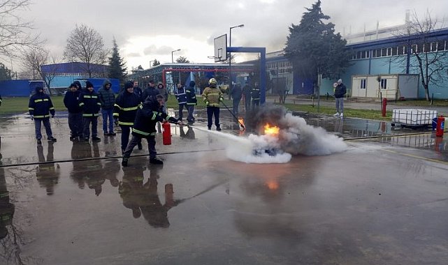 Büyükşehir İtfaiyesi, Tekirdağ ilinde kurulu bulunan Muratlı Karton Kâğıt Fabrikası acil durum ekiplerine yönelik eğitim gerçekleştirdi.KOCAELİ (İGFA) - Ulusal ve uluslararası çapta gerçekleştirdiği eğitim ve projelerle adından sıkça söz ettiren, bu sayede hem ülkemizin hem de ilimizin tanıtımında önemli bir rol oynayan Kocaeli Büyükşehir Belediyesi İtfaiye Dairesi Başkanlığı, eğitim ve bilinçlendirme faaliyetlerine devam ediyor. Bu kapsamda acil durum ekiplerine yönelik eğitimlerine devam eden Büyükşehir İtfaiyesi, Tekirdağ ilinde kurulu bulunan Muratlı Karton Kâğıt San. Ve Tic. A.Ş. firmasının acil durum ekiplerine yönelik eğitim gerçekleştirdi. İşletmenin kendi tesisinde 3 gün süren eğitimde, her gün farklı bir gruba eğitim verildi.3 GÜNLÜK EĞİTİMKocaeli Büyükşehir İtfaiyesi Önleme ve Eğitim Şube Müdürlüğü Eğitim Birimi (KOBİTEM) eğitmenleri tarafından teorik ve pratik olmak üzere iki aşamalı gerçekleştirilen eğitimde; Yanma ve Yangın, Yangın Yerindeki Tehlikeler, Söndürme Maddeleri ve Söndürme Teknikleri, Acil Durumda Hareket Tarzı, Kişisel Koruyucu Donanım, Taşınabilir Yangın Söndürücüler, Araç ve Ekipman başta olmak üzere çeşitli konularda bilgi sunuldu.UYGULAMALI YANGIN SÖNDÜRMEPratik bölümde, taşınabilir yangın söndürücülerle akaryakıt yangını söndürme çalışmaları yapıldı. Bina içi ve bina dışı yangın hortum dolaplarıyla hortum açma-serme ve suyla müdahale yöntemleri uygulandı. Ayrıca monitör kulesi tabir edilen sabit su işleme sistemleriyle de uygulamalı çalışma gerçekleştirildi.