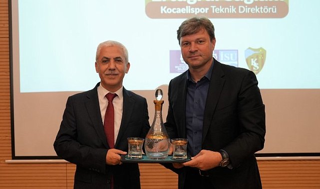 Kocaelispor Teknik Direktörü Ertuğrul Sağlam "Sporun Kent Kültürüne Etkisi" adlı seminerde İSU Genel Müdürlüğü personeliyle buluştu. Teknik direktör Ertuğrul Sağlam: " Bu sene, ligde olmak istediğimiz yerdeyiz, ligin geri kalanında da bu pozisyonumuzu korumak istiyoruz." dedi.KOCAELİ (İGFA) - İSU Genel Müdürlüğü; personel yetkinliğinin geliştirilmesi için hizmet içi eğitimlerin yanında, personelin güncel konularla ilgili bilgi edinmesi ve toplumsal kültüre katkısının arttırılmasını sağlayacak etkinlikler de düzenliyor. Bu kapsamda Kocaeli'nin önemli değerlerinden ve markalarından Kocaelispor ve İSU Genel Müdürlüğü "Sporun Kent Kültürüne Etkisi" adlı seminerde bir araya geldi.Kocaelispor Teknik Direktörü Ertuğrul Sağlam ve kulüp yöneticilerini seminer öncesi Genel Müdür Ali Sağlık makamında ağırladı.Ziyaretin ardından seminerin verileceği konferans salonuna geçilerek personelle bir araya gelindi. Yoğun katılımın sağlandığı seminerde Kocaelispor teknik direktörü Ertuğrul Sağlam, başarı hikayelerinin ardında yatan unsurları ve Kocaelispor ile yakalamak istediği başarı hedeflerini anlattı."YIL SONUNA KADAR HEDEFİMİZ: GELDİĞİMİZ NOKTAYI KORUMAK"İSU personelinin sorularını da yanıtlayan Kocaelispor Teknik Direktörü Ertuğrul Sağlam, devre arasına kadar kalan maçlarda Kocaelispor'un hedefiyle ilgili bilgi verdi.Sağlam: "Devre arasına kadar kalan dört maçı da kazanmak istiyoruz ama her maçı ayrı ayrı olarak değerlendiriyoruz. Bence bu sezonun finali cuma günü oynayacağımız Ümraniye maçıdır. Biz şu an, olmak istediğimiz yerdeyiz. Sezon tamamlandığında da bitirmek istediğimiz yerde olacağız. Şunu da biliyoruz ki altımızdaki 7-8 takımın da en önemli hedefi: Bizim şu an olduğumuz yerde olmak. Bu yüzden bulunduğumuz yere sahip çıkmalıyız. Daha çok çalışıp, daha fazla zaman ayırıp şehrin hayalini gerçekleştirmek için yerimizi korumalıyız!" diye konuştu.ERTUĞRUL SAĞLAM'IN İÇTEN SU YORUMUİSU Genel Müdürlüğü'nün abonelerine kaliteli bir şekilde ulaştırdığı suyu, Kocaelispor teknik direktörü Ertuğrul Sağlam içten bir şekilde değerlendirildi:"Konuşmamın başında suyumuzu içtim, suyumuz çok lezzetli, konuşmamı da bu yüzden hiç kesilmeden devam ettirdim." diyerek suyundan yudum alması seyircileri gülümsetti. Programın sonunda teşekkür konuşması yapan İSU Genel Müdürü Ali Sağlık: "Ertuğrul Hocamıza katılımları dolayısıyla teşekkür ediyorum, Kocaelispor kentimizin en önemli ortak değeri. Bu sene Kocaelispor'umuzun şampiyon olacağına inancımız tam. Bu vesileyle hocamızın ve takımımızın başarılarının devamını diliyorum." diye konuştu. Genel Müdür Ali Sağlık konuşmasının sonunda Ertuğrul Sağlam'a sürahi takımı takdim etti. Kendisine gösterilen yoğun ilgiden dolayı ayrıca teşekkür eden teknik direktör Ertuğrul Sağlam, programın sonunda personel ile toplu fotoğraf çekilerek kuruma veda etti.