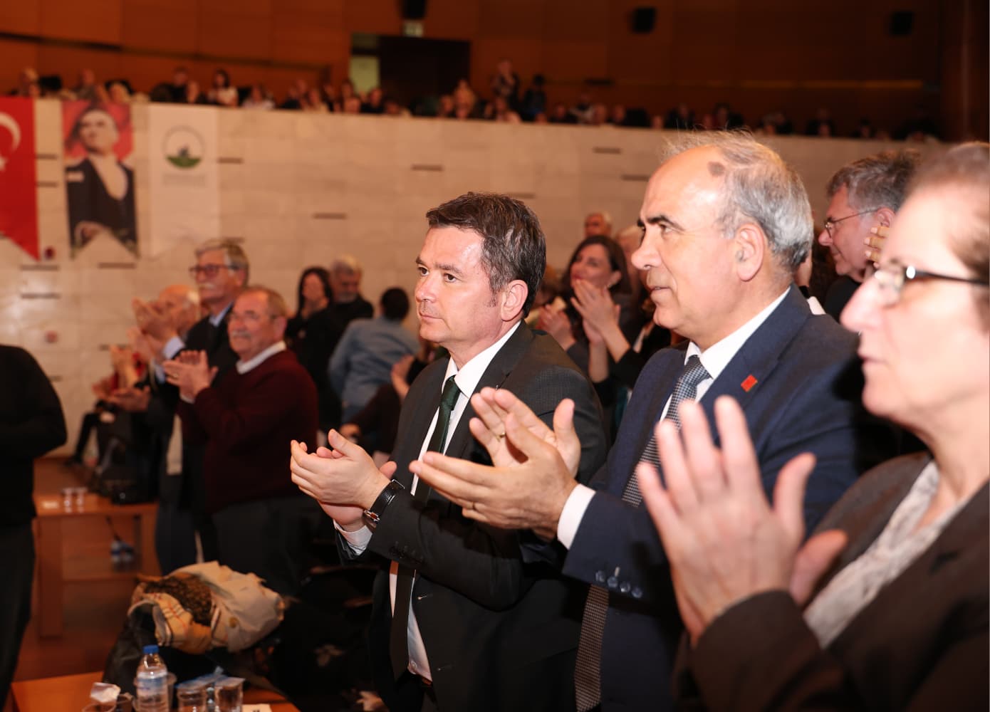 Başkan Aydın, kendisinin de Köy Enstitüsü mezunu bir dedenin torunu olduğunu belirterek, ailesinin Cumhuriyet dönemindeki eğitim fırsatlarından yararlandığını ifade etti. Annesinin öğretmen, babasının mühendis olduğunu söyleyen Aydın, “Parasız yatılı okullar sayesinde eğitim aldım. Bugün burada görev yapabiliyorsam, bunu Atatürk’e ve Cumhuriyet aydınlarına borçluyum.” dedi.Konuşmasında toplumsal sorumluluğa da dikkat çeken Aydın, “Türkiye’nin daha aydınlık bir geleceğe ulaşması için hep birlikte üretmek zorundayız.” ifadelerini kullandı.