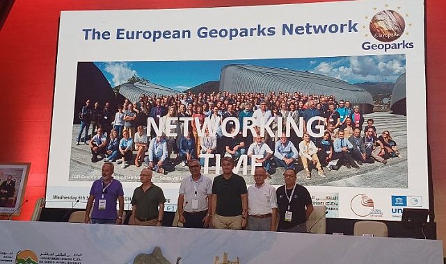 Manisa Büyükşehir Belediye Başkanı Cengiz Ergün öncülüğünde kurulan Jepork Belediyeler Birliği, Fas'ın Marakeş şehrinde düzenlenen 10. Uluslararası UNESCO Küresel Jeoparklar Ağı Konferansı'na katılım sağladı.MANİSA (İGFA) - Uluslararası GGN toplantılarının 10'uncusu, bu yıl 3-11 Eylül tarihleri arasında Fas'ın Marakeş şehrinde yapıldı. 10. Uluslararası UNESCO Küresel Jeoparklar Ağı Konferansı'na, Jeopark Belediyeler Birliğinden Manisa Büyükşehir Belediye Başkanı Temsilcisi Azmi Açıkdil, Kula Belediye Başkanı Hüseyin Tosun, Salihli Belediye Başkanı Zeki Kayda, Jeopark Belediyeler Birliği Koordinatörleri Prof. Dr. Tuncer Demir ve Doç. Dr. Serdar Aytaç da katıldı.Fas'taki M'Goun UNESCO Küresel Jeoparkı'nda gerçekleşen toplantıda, Kula-Salihli UNESCO Global Jeoparkı sınırları içerisinde yer alan Türkiye'nin en genç volkanlarının bulunduğu Kula ile Salihli'deki jeositler, doğal ve kültürel güzellikler, Sart ve Bintepeler yabancı delegelere tüm görselleriyle detaylı bir şekilde anlatıldı.Kula-Salihli UNESCO Küresel Jeoparkı'na ilişkin onay dosyasının konferansa katılan heyetler tarafından ele alınarak görüşüldüğünü belirten Başkan Danışmanı Azmi Açıkdil, "Bizler için oldukça verimli geçen bu toplantının Jeopark Belediyeler Birliğimiz ile ülkemize hayırlı olmasını temenni ediyorum. Ayrıca, 2024 yılının Mart ayında yapılması planlanan Avrupa Jeoparklar Ağı Koordinasyon Komitesi Toplantısı, Kula-Salihli UNESCO Global Jeoparkımızda gerçekleşecektir" dedi. Marakeş'te gerçekleştirilen 10. Uluslararası UNESCO Küresel Jeoparklar Ağı Konferansı'nda kürsüye davet edilerek, söz verilen Jeopark Belediyeler Birliği Manisa Büyükşehir Belediye Başkanı Temsilcisi Azmi Açıkdil, Kula Belediye Başkanı Hüseyin Tosun ve Salihli Belediye Başkanı Zeki Kayda, Avrupa Jeoparklar Ağı Koordinasyon Komitesi Üyelerini Kula-Salihli UNESCO Global Jeoparkı'na davet ettiler.