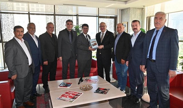 Kula Kaymakamı Ömer Ahmet Özdemir, Kula Belediye Başkanı Hüseyin Tosun ve beraberindeki meclis üyeleri, Manisa Büyükşehir Belediye Başkanı Cengiz Ergün'ü makamında ziyaret etti.MANİSA (İGFA) - Manisa Büyükşehir Belediye Başkanı Cengiz Ergün, Kula Belediye Başkanı Hüseyin Tosun ve beraberindeki meclis üyelerini makamında ağırladı. Ziyarette Manisa Büyükşehir Belediye Meclisi MHP Grup Başkanvekili Mehmet Güzgülü de yer aldı. Başkan Cengiz Ergün, ziyarette Kula Kaymakamı Ömer Ahmet Özdemir'e Manisa CBÜ akademisyenleri tarafından hazırlanan 'Yüzüncü Yılında Milli Mücadele Döneminde Manisa' isimli 4 ciltlik kitap serisini hediye etti. Ziyarette Manisa Büyükşehir Belediyesi ve Kula Belediyesi tarafından Kula'ya kazandırılacak yatırımlar üzerine fikir alışverişinde bulunuldu.