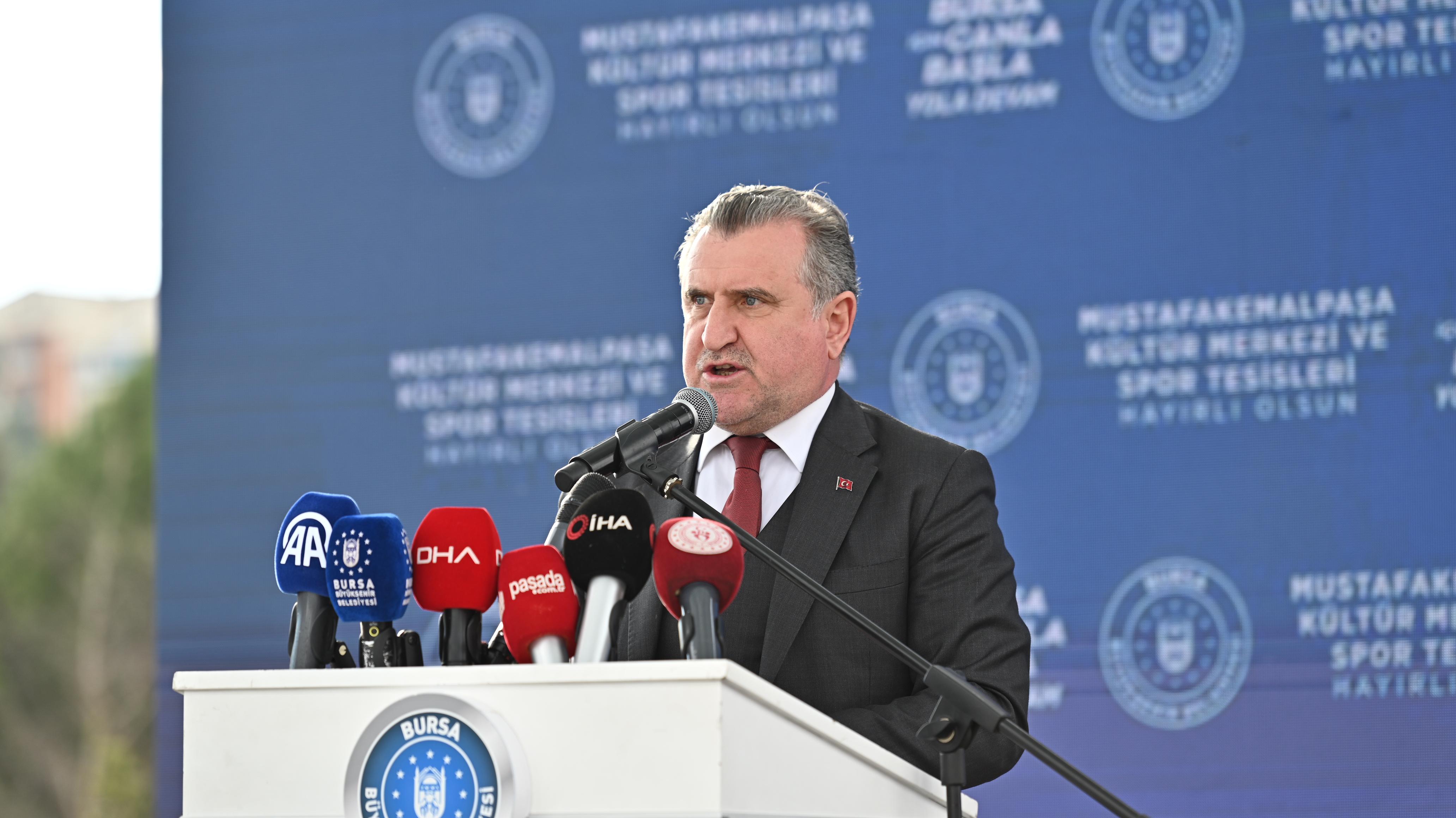 Gençlik ve Spor Bakanı Osman Aşkın Bak, tesisin yapımında ve Mustafakemalpaşa’ya kazandırılmasında emeği geçenlere teşekkür etti. Hizmet ve eser siyasetini benimseyen kadroların bir eseri daha Bursa’ya kazandırdığını söyleyen Bakan Bak, “Bu tesisleri gençlerimiz için ortaya çıkardık. İçerisinde yüzme havuzları, kültür merkezi, gençlik merkezi, oyun alanları var. Bu devasa eser, Mustafakemalpaşa’ya hayırlı olsun. Son 22 senede Cumhurbaşkanımız Recep Tayyip Erdoğan’ın önderliğinde Türkiye’de spor devrimi gerçekleştirildi. Türkiye’nin dört bir tarafına spor tesisleri kazandırmaya devam ediyoruz. Bursa’nın her bir köşesine de tesisler, salonlar, gençlik merkezleri kazandıran Büyükşehir Belediye Başkanı Alinur Aktaş’ı tebrik ediyorum. Türkiye başarılı spor yatırımlarıyla Avrupa’da ve dünyada adından söz ettiriyor. Türkiye geleceğe güvenle yürümektedir. Biz çılgın Türkleriz. Gittiğimiz her yerde heyecan ve dinamizm getiririz. Son haftalarda aldığımız başarılar bunu göstermektedir. Tüm çocuklarımızı spor tesislerimize, gençlik merkezlerimize bekliyoruz. Tesisimiz hayırlı uğurlu olsun” diye konuştu.
