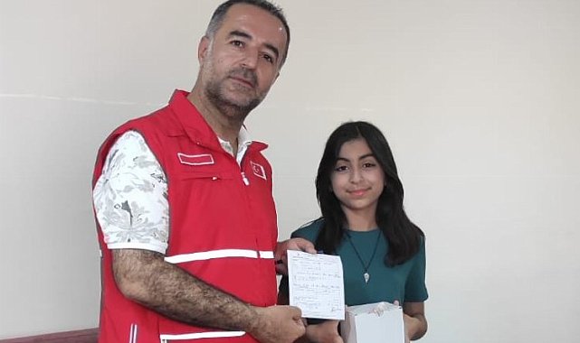 Mardin'de Şehit Polis Vedat Kaya Ortaokulu 5.sınıf öğrencisi Yağmur Atılmış kumbarasında biriktirdiği paraları, İsrail tarafından acımasızca katledilen Gazze halkına Kızılay aracılığı ile bağışladı. Şehmus EDİS / MARDİN (İGFA) - Örnek davranışından dolayı Yağmur Atılmış'ı ziyaret eden Kızılay Artuklu Şube Başkanı Şehmus Arı ve Kadın Kızılay Birimi Başkanı Zeynep Kumaç kendisine teşekkür ederek çeşitli hediyeler takdim ettiler.Kızılay Artuklu Şube Başkanı Şehmus Arı, Şehit Polis Vedat Kaya Ortaokulu 5.sınıf öğrencisi Yağmur Atılmış kumbarasında biriktirdiği paraları, İsrail tarafından acımasızca katledilen Gazze halkına bağışlamak istediğini söyledi. bizde kendisini kırmayarak ziyaret ettiklerini ifade eden Ari" Artuklu Kızılay şubesi olarak öğrencimizin bağışını teslim aldık.Kızılay Artuklu Şubesi olarak bu duyarlı davranışından dolayı öğrencimize teşekkür edip hediyesini takdim ettik"dedi."BU DAVRANIŞ HEPİMİZİ DUYGULANDIRDI, MUTLU ETTİ"
