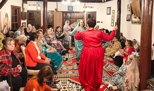 Kütahya Belediyesi'ne ait Yüksek Kahve'de düzenlenen "Şalvar Gecesi" etkinliğinde kadınlar, gezek ve mübareke kültürünü yaşatarak renkli ve nostaljik anlar yaşadı.KÜTAHYA (İGFA) - Kütahya Belediyesi'ne ait Yüksek Kahve'de, kadınların kendi aralarında geleneksel gezek ve mübareke kültürünü yaşatmak amacıyla düzenlediği "Şalvar Gecesi" etkinliği yoğun ilgi gördü. Şehrin örf ve adetlerine sahip çıkmak amacıyla hayata geçirilen program, keyifli ve renkli görüntülere sahne oldu.