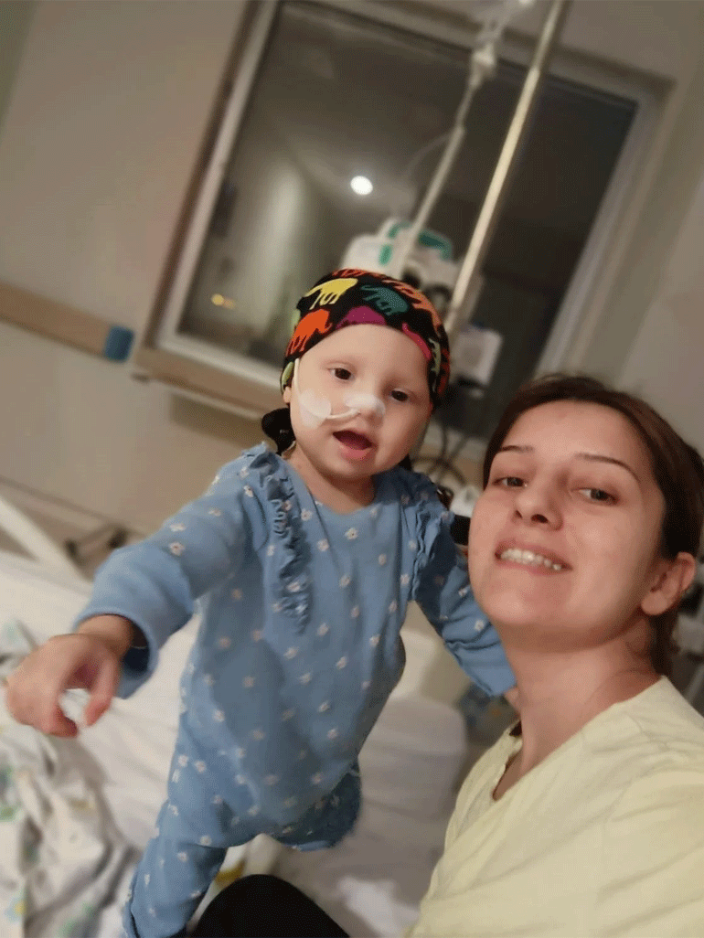 Gözü yaşlı anne Büşra Öner: "İkra'nın hiçbir rahatsızlığı yoktu. 2 aylıkken huysuzluk nedeniyle hastaneye acile götürdüm. Doktorumuz kanını aldı. Kanında enfeksiyon vardı. Acilen Akdeniz Üniversitesi Tıp Fakültesi Acil Servisi'ne geldik. Lösemi teşhisi koyulunca İkra yoğun bakıma alındı. 4 günlük yoğun bakım sürecinden sonra servise geçtik. Sonrasında kemoterapilere devam edildi. Kemoterapiye yanıt vermedi.