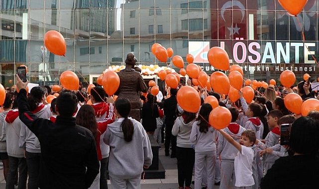 Lösemili Çocuklar Sağlık ve Eğitim Vakfı'nın 2-8 Kasım Lösemili Çocuklar Haftası etkinlikleri yurt genelinde sürüyor. Ankara'nın farklı ilçelerinden katılım sağlayan farklı yaş gruplarından ve okullardan yüzlerce öğrenci tedavisi LÖSANTE'de devam eden lösemili kardeşleri için bir araya geldi.ANKARA (İGFA) - Lösemili Çocuklar Haftası'nın ilk günün farklı yaş gruplarından öğrenciler LÖSEV'in hastanesi LÖSANTE'de buluştu. Yaklaşık bin öğrencinin katıldığı etkinlik, saygı duruşu ve İstiklal Marşı ile başladı.Tedavisi devam eden Lösemili Çocuklara moral vermek ve lösemiye karşı toplumsal farkındalık oluşturmak amacıyla bir araya gelen çocuklar önce kardeşlerine camdan el salladı, turuncu balonlarnı iyileşmeleri dilekleri ile havalandırdı ardından düzenlenen etkinliklerle umut dolu anılar biriktirdi.Günün anlam ve önemini bildiren konuşmanın ardından LSV Eğitim Kurumları,İlkokul Öğrencileri jimnastik gösterisi ve modern dans gösterisi ile etkinliğe renk kattı. Umudu ve dayanışmayı temsil eden LÖSEV turuncusu balonlar gökyüzüne salındı.TURUNCU FARKINDALIKLÖSEV yetkilileri yaptıkları açıklamada ilkokullardan üniversiteler, kurumlardan bireylere kadar herkesi toplumsal farkındalık hareketine destek olmaya çağırarak, "2-8 Kasım Lösemili Çocuklar Haftası'nda "Ben de LÖSEV'in ve Lösemili Çocukların yanındayım, turuncumla farkındayım" diyorsanız turuncu renkli bir kıyafet ya da turuncu aksesuarlarınızla bireysel ya da kurumsal fotoğraf paylaşımlarınızı sosyal medya hesaplarınızda #BizKazanacağızLÖSEV, @losev1998 etiketleyerek paylaşabilirsiniz" mesajını verdi.