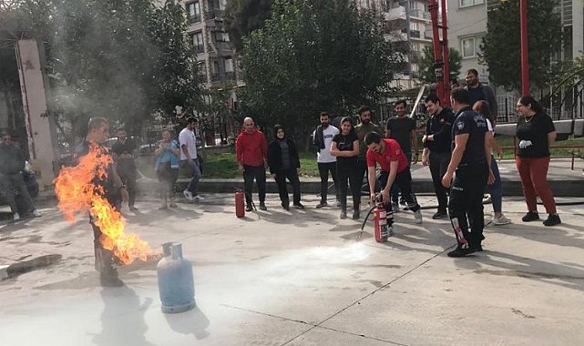 Manisa Büyükşehir Belediyesi İtfaiye Dairesi Başkanlığı, Manisa UMKE'de görevli sağlık personellerine 2 ayrı grup halinde temel yangın eğitimi verdi. Eğitimin ardından uygulamalı tatbikat gerçekleştirildi.MANİSA (İGFA) - Yangın eğitimleriyle kamu kurum ve kuruluşlarına katkı sağlayan Manisa Büyükşehir Belediyesi İtfaiye Dairesi Başkanlığı, eğitimlerine aralıksız devam ediyor.Eğitimler kapsamında Manisa UMKE'de görevli sağlık personellerine 2 ayrı grup halinde temel yangın eğitimi verildi. 1 günlük eğitimin ardından uygulamalı yangın söndürme tatbikatı yapıldı.Eğitim alan Manisa UMKE sağlık personelleri, yangına karşı ilk müdahaleyi ve yangını söndürmeyi uygulamalı olarak öğrendi.