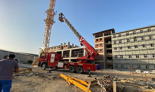 Manisa Celal Bayar Üniversitesi Kula Meslek Yüksekokulu'nun yurt inşaatında, vinç operatörü olarak çalışan ve 33 metre yükseklikte kabinde mahsur kalan Yusuf Seven, Manisa Büyükşehir Belediyesi İtfaiye Dairesi Başkanlığı ekipleri tarafından 55 metrelik merdivenli aracı ile kurtarılarak sağlık ekiplerine teslim edildi. MANİSA (İGFA) - Manisa Celal Bayar Üniversitesi Kula Meslek Yüksekokulu yurt inşaatında çalışan vinç operatörü Yusuf Seven, 33 metre yükseklikteki kabinde mahsur kaldı. Mahsur kalan Seven, tüm çabalarına rağmen mahsur kaldığı yerden kurtulamayınca 112'yi arayarak yardım istedi. Alınan bilgiler üzerine Seven'e Manisa Büyükşehir Belediyesi İtfaiye Dairesi Başkanlığı'na bağlı ekipler kurtarma çalışmalarına başladı.İtfaiye ekipleri yüksekte yaşanan olaylara müdahalede kullandıkları 55 metrelik merdivenli aracıyla yaptığı kurtarma operasyonunda Yusuf Seven'i aşağı indirerek sağlık ekiplerine teslim etti. Yusuf Seven'in ilk kontrollerde sağlık durumunun iyi olduğu öğrenildi.