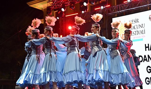 484. Uluslararası Manisa Mesir Macunu Festivali etkinlikleri kapsamında, Halk Dansları Gala Gecesi gerçekleştirildi. Festival kapsamında 8 farklı ülkeden Manisa'ya gelen halk oyunları ekipleri, ülkelerine özgü halk dansları performanslarıyla büyük beğeni topladı.MANİSA (İGFA) - Bu yıl 484'üncüsü düzenlenen Uluslararası Manisa Mesir Macunu Festivali, düzenlenen birbirinden güzel ve renkli etkinliklerle Manisa'yı adeta karnaval yerine dönüştürdü. Festivalin 2'nci gününün sonunda Cumhuriyet Meydanı'nda Halk Dansları Gala Gecesi düzenlendi.Etkinliği çok sayıda Manisalı vatandaş takip etti. Kuzey Kıbrıs Türk Cumhuriyeti, Kazakistan, Bulgaristan, Kırgızistan, Özbekistan, Sırbistan, Bosna Hersek, Moldova ve Manisa Büyükşehir Belediyesi Halk Oyunları Topluluğu ekipleri, ülkelerine özgü halk danslarını sergiledi.Gösterilerle Cumhuriyet Meydanı, gece boyunca şenlik alanına dönüşürken, gösteriyi izleyen vatandaşlar, o anları cep telefonlarıyla kaydetti. Dans gösterilerinin ardından halk dansları gala gecesine katılım sağlayan gruplara, protokol üyeleri tarafından teşekkür belgesi, plaket ve çeşitli hediyeler takdim edildi.