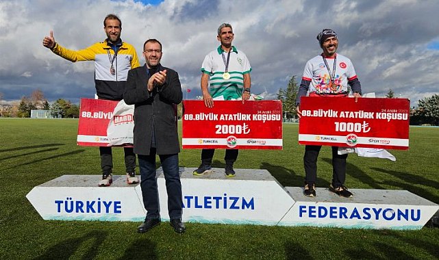 Manisa Büyükşehir Belediyespor'un başarılı atleti Ahmet Bayram, 88. Büyük Atatürk Koşusu'nda 45-49 yaş grubunda zirvede yer aldı. Ankara'dan madalya ile dönen yeşil beyazlı atlet, başarılarına bir yenisini daha ekledi.MANİSA (İGFA) - Türkiye Cumhuriyeti'nin kurucusu Gazi Mustafa Kemal Atatürk'ün Ankara'ya gelişinin 104'üncü yıldönümü kapsamında düzenlenen 88'inci 'Büyük Atatürk Koşusu'nda yaklaşık 3 bin koşucu, Dikmen Keklikpınarı'ndan başlayarak yoğun yağış altında Anıttepe güzergahında koştu.Manisa Büyükşehir Belediyespor'un başarılı atleti Ahmet Bayram, 9 kilometrelik parkuru 28 dakika 35 saniyede tamamladı. 45-49 yaş grubunda birinci olan Ahmet Bayram, genel klasmanda 22'nci sırada yer aldı.Yarış sonunda Ahmet Bayram'a ödülünü Türkiye Atletizm Federasyonu Başkanı Fatih Çintimar takdim etti.