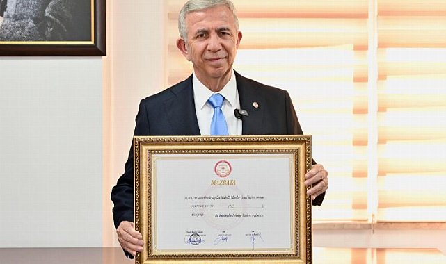 31 Mart Yerel Seçimlerinde yeniden Ankara Büyükşehir Belediye Başkanı seçilen Mansur Yavaş, mazbatasını aldı.ANKARA (İGFA) - Başkentlilerin rekor bir oyla yeniden Ankara Büyükşehir Belediye Başkanı seçtiği Mansur Yavaş, mazbatasını aldı.Ailesiyle birlikte Ankara İl Seçim Kurulu'na gelen Yavaş, mazbatasını Ankara İl Seçim Kurulu Başkanı Volkan Keskinkaya verdi.Mazbatayı aldıktan sonra ailesiyle birlikte hatıra fotoğrafı çektiren Yavaş, beş yıllık hizmetinin ardından güvenini kendisini rekor oyla seçerek gösteren Başkentlilere ve parti teşkilatına teşekkür ederek, yeni dönemde de hesap verebilir, şeffaf ve katılımcı bir belediyecilik anlayışı sergileyeceklerini vurguladı.Yavaş, "Hep beraber, seçilen belediye başkanlarımızla birlikte Ankara'yı Mustafa Kemal Atatürk'ün bize emanet ettiği şekliyle, dünya başkentleriyle yarışır bir Başkent yapmak ana hedefimiz olacak" dedi.Yavaş, bundan sonra da kendisine güvenenlerin başını eğdirecek hiçbir işin içinde olmadan Ankara halkına hizmet etmeye devam edeceklerinin altını çizerek, "İnşallah hep beraber seçilen belediye başkanlarımızla birlikte Ankara'yı Mustafa Kemal Atatürk'ün bize emanet ettiği şekliyle, dünya başkentleriyle yarışır bir Başkent yapmak ana hedefimiz olacak" dedi. ÖNCELİK İNSAN SAĞLIĞINI İLGİLENDİREN PROJELERKonuşmasının ardından basın mensuplarının sorularını yanıtlayan Yavaş, yeni dönemde önceliğinin Tatlar Arıtma Tesisi olacağını belirterek, insan sağlığını önceleyen projelere imza atacaklarını vurguladı.