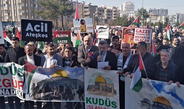 Mardin'de sivil toplum kuruluşları, Cuma namazı çıkışı İsrail'i protesto ederek, Gazze halkına uygulanan soykırıma dikkat çekti.Şehmus EDİS / MARDİN (İGFA) - Kentte faaliyet yürüten 60'a yakın sivil toplum kuruluşunun oluşturduğu Mardin Sivil Toplum Kuruluşları Platformu üyeleri, Cuma namazı çıkışı Şakir Nuhoğlu Camii önünde toplanarak, Filistin'e yönelik sürdürdüğü saldırılar nedeniyle İsrail'i protesto etti. Kalabalık, sık sık 'Mardin'den Gazze'ye direnişe bin selam' sloganları attı. Dualarla başlayan eylem, yürüyüşle sona erdi.