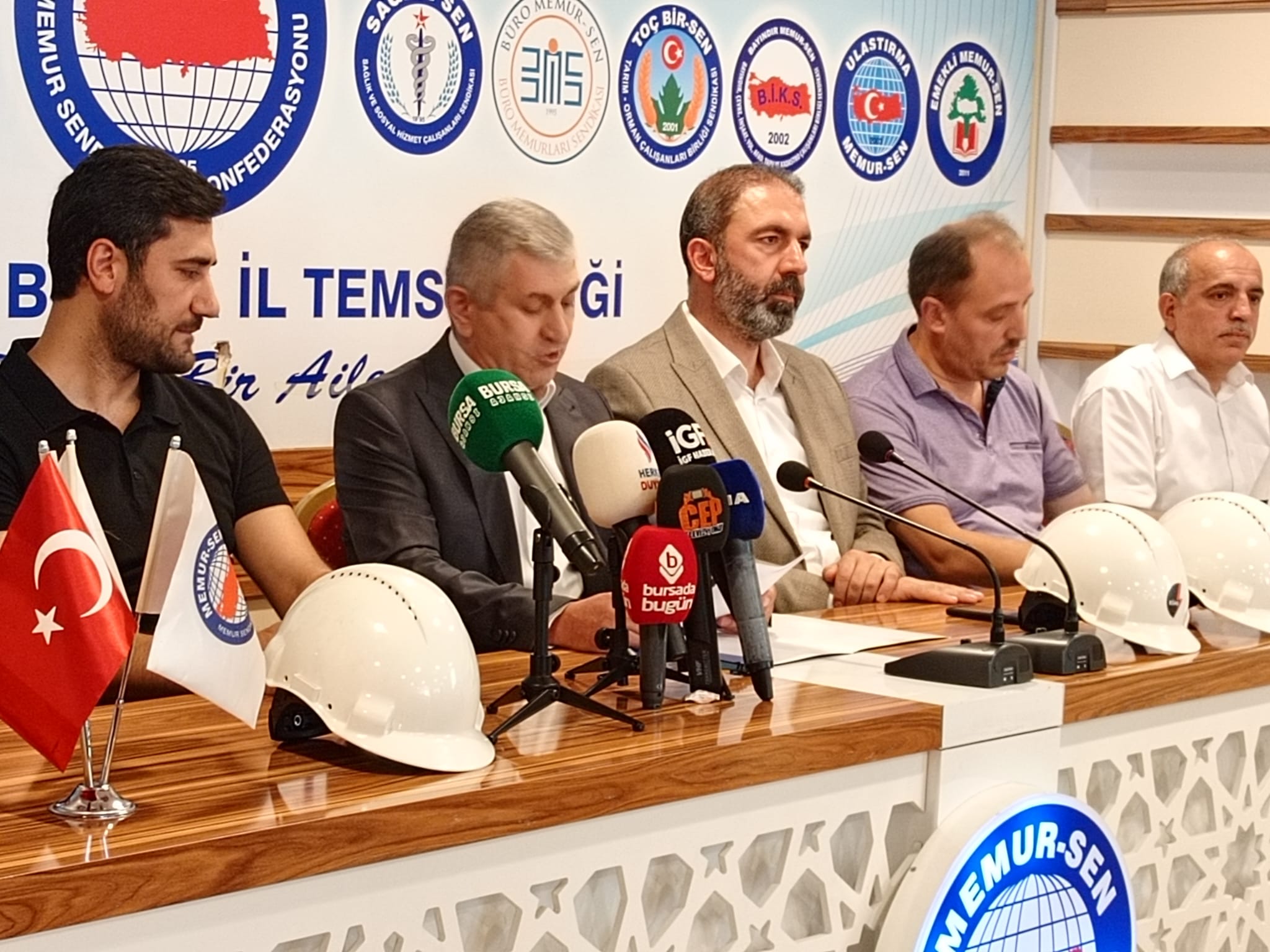 Gazeteabc/ Adiviye ElbaşBursa Memur-Sen İl Binasında Toplu Sözleşme Hükümlerine Aykırı Tasarruf Tedbirleri Genelgesi ve Çözüm Bekleyen Konular İçin Eylem kararı ile ilgili basın açıklamasında bulundu. Enerji Bir-Sen Başkanı Cemal Aydın: "Biz mevcut sorunların çözülmesini beklerken, bürokratik oligarşi tarafından yeni sorunlar üretilip önümüze koyuluyor." dedi.