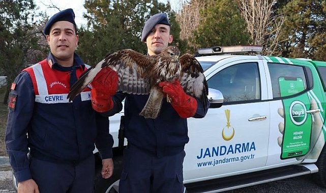 Erdoğan DEMİR / EDİRNE (İGFA) - Edirne İl Jandarma Komutanlığı Çevre Doğa ve Hayvanları Koruma Timi, Meriç ilçesi kırsalında bitkin halde bulunan bir şahin kuşunu kurtardı.