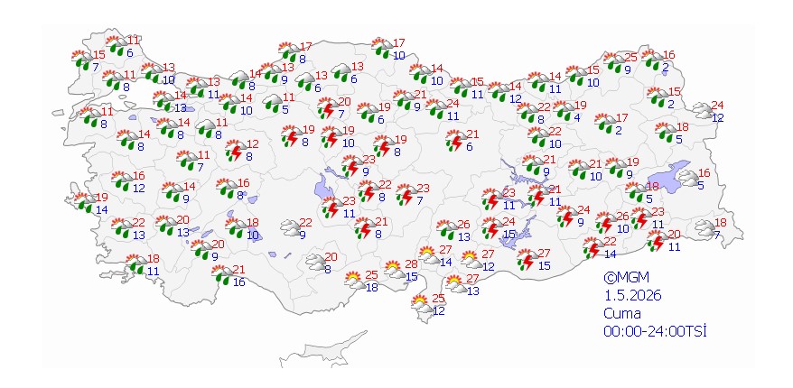 AKOM, yarından itibaren ise bölgede soğuk ve yağışlı hava sisteminin yeniden etkisini göstereceğini bildirdi. Özellikle 1 Mayıs Cuma günü yağışların yer yer kuvvetli ve yoğun şekilde görülebileceği ifade edildi.