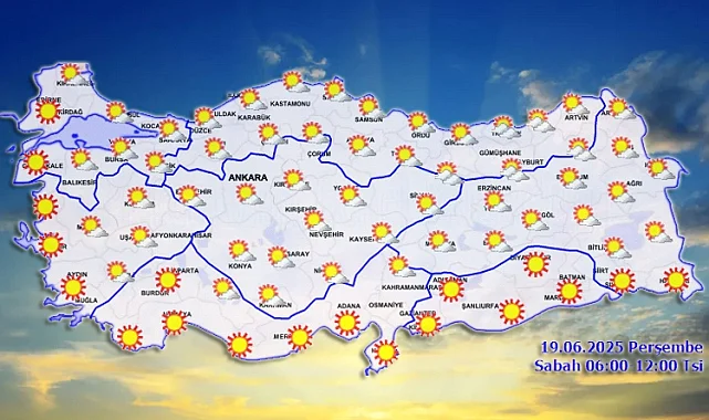 Meteoroloji Genel Müdürlüğü'nün raporuna göre, kuzeydoğu bölgeler parçalı bulutlu, Trabzon ve Rize'de yerel yağış bekleniyor. Diğer yerler az bulutlu ve açık. Hava sıcaklıkları mevsim normallerinin üstünde, kuzeyden esen rüzgar hafif.ANKARA (İGFA) - Meteoroloji Genel Müdürlüğü 19 Haziran Perşembe gününe ilişkin hava tahmin raporunu yayımladı. Buna göre ülkemizin kuzeydoğu kesimlerinin parçalı, yer yer çok bulutlu; Trabzon ve Rize'nin iç kesimlerinin yerel olmak üzere sağanak yağışlı, diğer yerlerin az bulutlu ve açık geçeceği tahmin edildi.Hava sıcaklığının, yurt genelinde mevsim normallerinin üstünde seyretmesi beklenirken, rüzgarın ise genellikle kuzey yönlerden hafif, ara sıra orta kuvvette eseceği tahmin edildi.Meteoroloji günlük hava tahmin raporunda bugüne ilişkin herhangi bir uyarıda bulunmadı.
