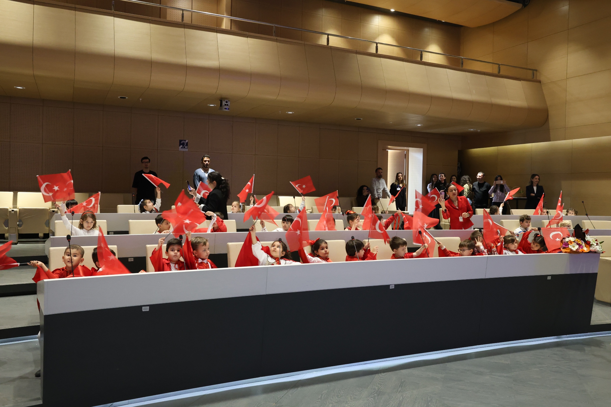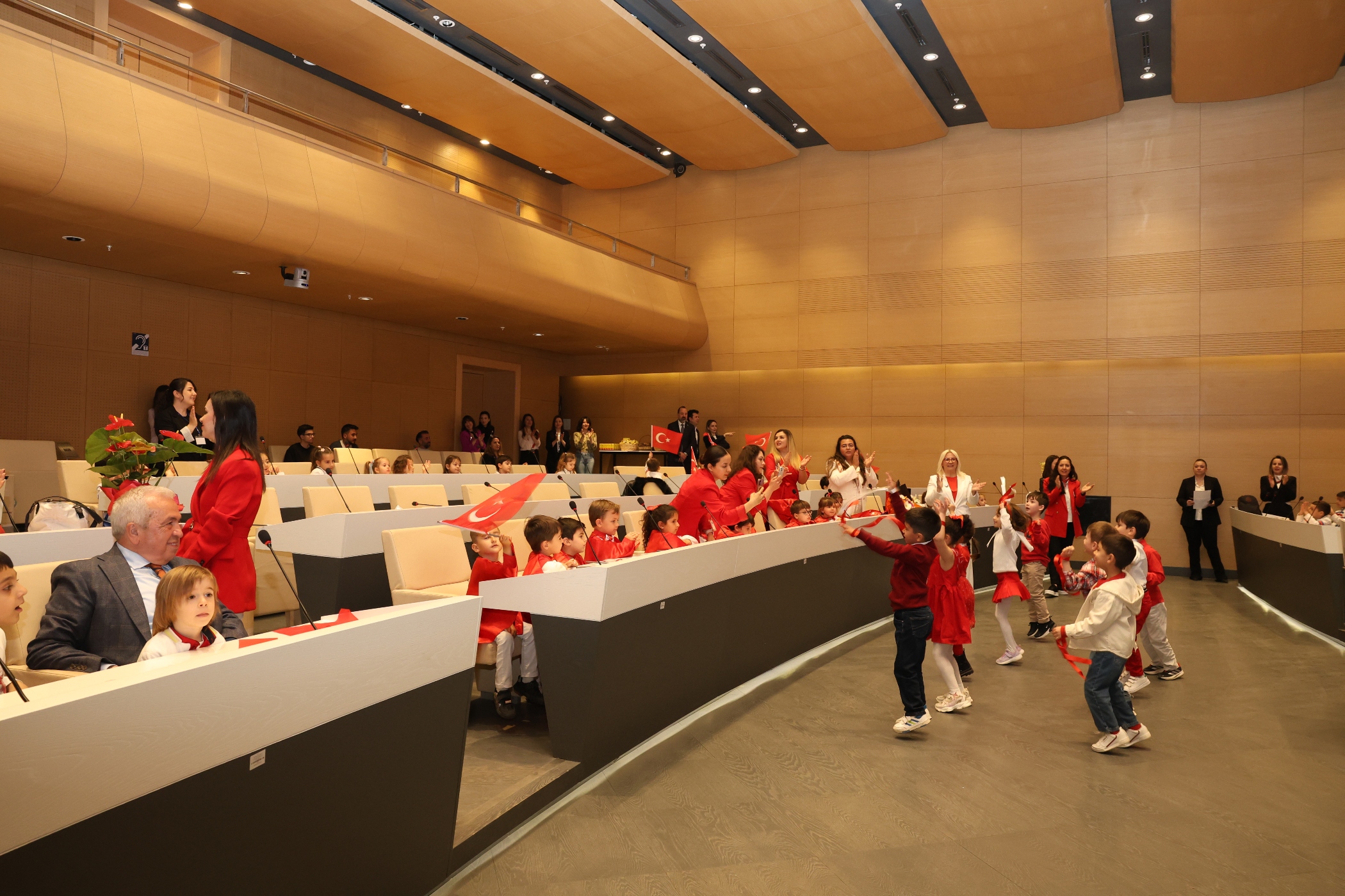 5-6 yaş grubundaki çocuklar, hazırladıkları performanslarla izleyenlere keyifli anlar yaşattı. Sahnedeki gösteriler ve okunan şiirler, salonda bayram coşkusunu artırdı.
