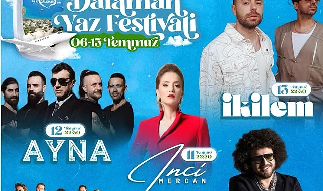 Muğla Dalaman Belediyesi ve Bizim Medya Organizasyon iş birliğiyle düzenlenen 2025 Dalaman Yaz Festivali başlıyor. MUĞLA (İGFA) - 2025 Dalaman Yaz Festivali, 6-13 Temmuz tarihleri arasında Dalaman Kapalı Pazar Yeri'nde gerçekleştirilecek. Festival kapsamında panayır alanı kurulacak, çeşitli eğlenceli aktiviteler ve sürpriz etkinliklerle Dalaman'da yaz coşkusu doyasıya yaşanacak.Festival boyunca kurulacak panayır alanı, çocuklara ve ailelere yönelik eğlenceli etkinliklerle renklenecek. Yeme-içme stantları, hediyelik ürünler ve çeşitli sürprizler de ziyaretçileri bekliyor olacak.Festivalin en dikkat çeken bölümü ise birbirinden ünlü sanatçıların sahne alacağı konser programı olacak. Ceren Özdemir, Can Gox, Dalaman Türk Sanat Müziği Korosu, İnci Mercan, Arkaplan, Ayna ve İkilem sahne performanslarıyla festivale damga vuracak. Dalaman Belediye Başkanı Sezer Durmuş, yaptığı açıklamada tüm halkı festivale davet ederek şunları söyledi: "Geçtiğimiz yıl düzenlediğimiz ve vatandaşlarımız tarafından büyük bir beğeni toplayan Dalama Yaz Festivalini bu yıl tekrar düzenliyoruz. Yaz aylarını hep birlikte coşkuyla karşılayacağımız bu festival, hemşehrilerimizin bir araya gelip eğleneceği, kültür ve sanatla buluşacağı bir organizasyon olacak. Tüm vatandaşlarımızı Dalaman Yaz Festivali'ne bekliyoruz."