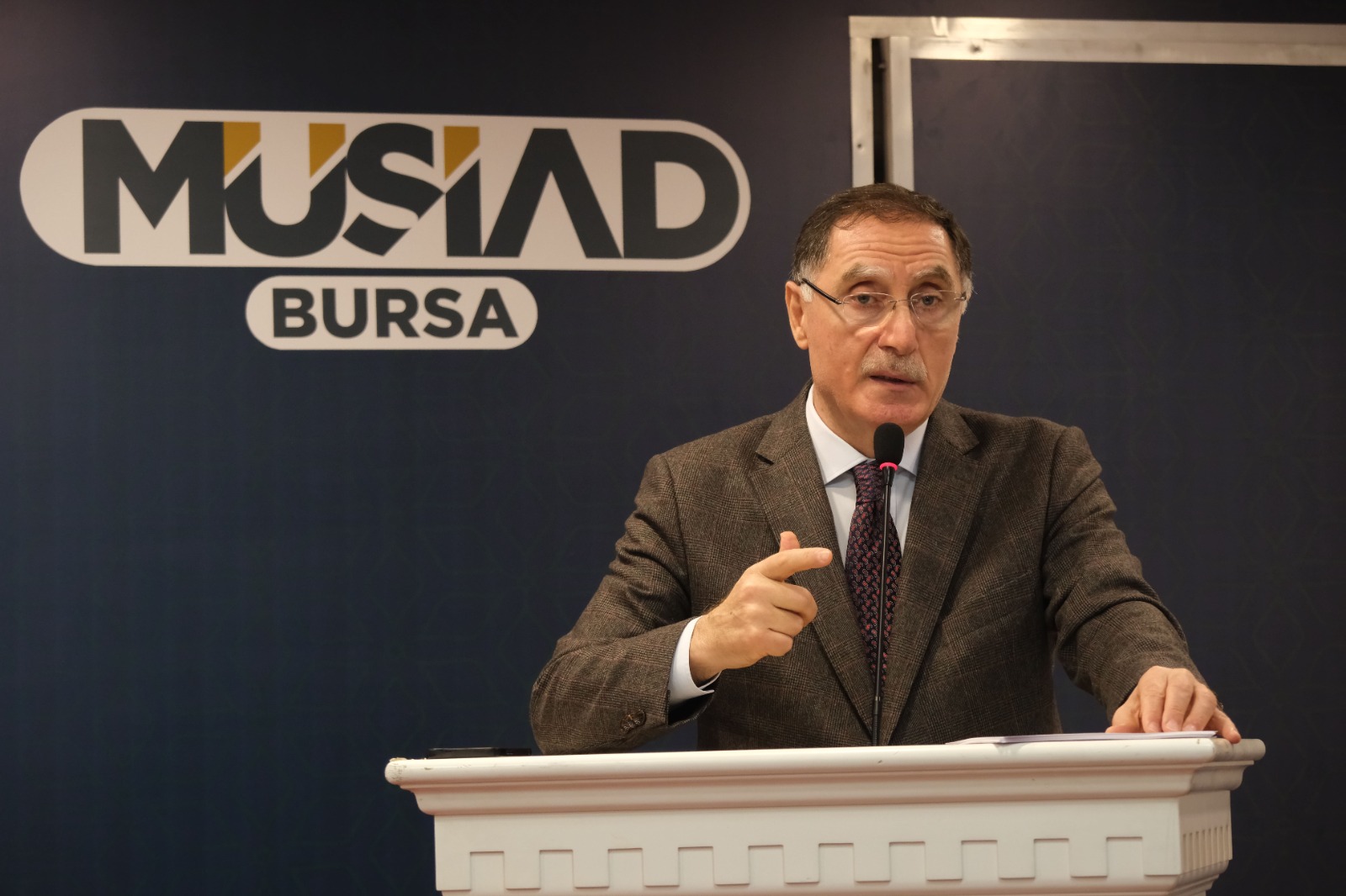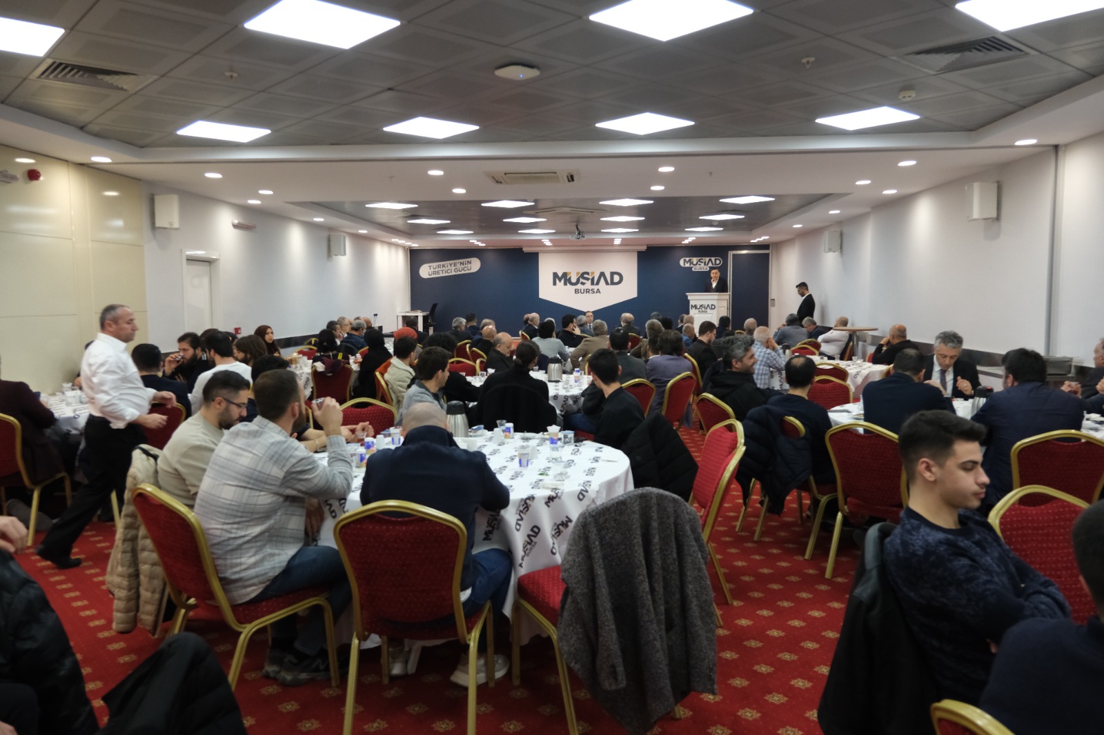 Programda yapılan konuşmaların ardından MÜSİAD Bursa Şubesi Yönetim Kurulu Başkan Yardımcısı İbrahim Güney, Kamu Başdenetçisi Şeref Malkoç’a günün anısına hediye taktim etti.