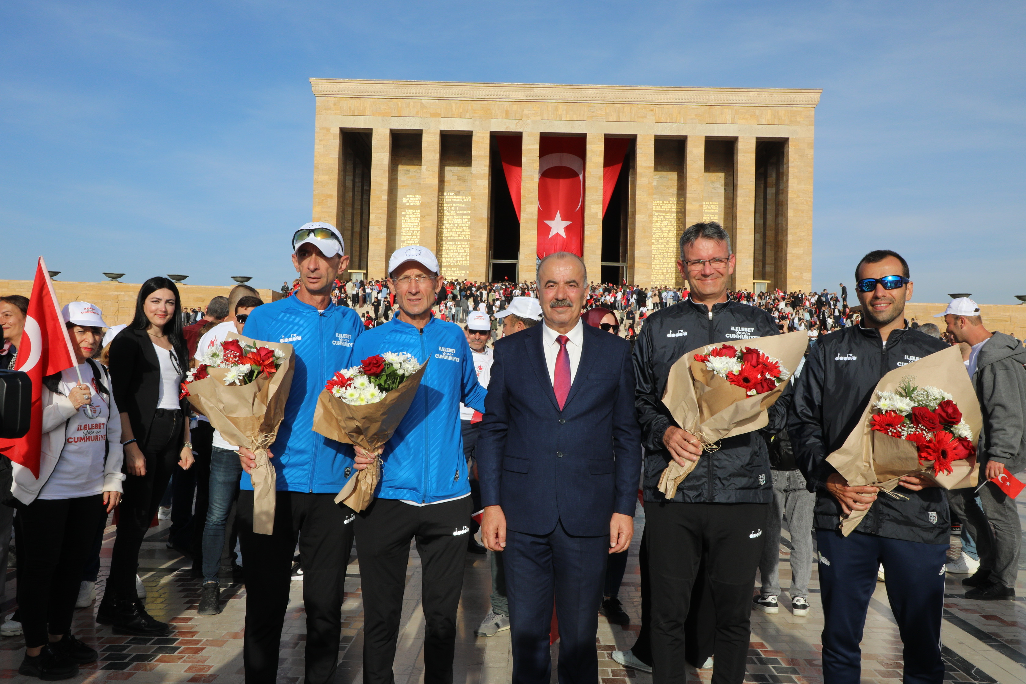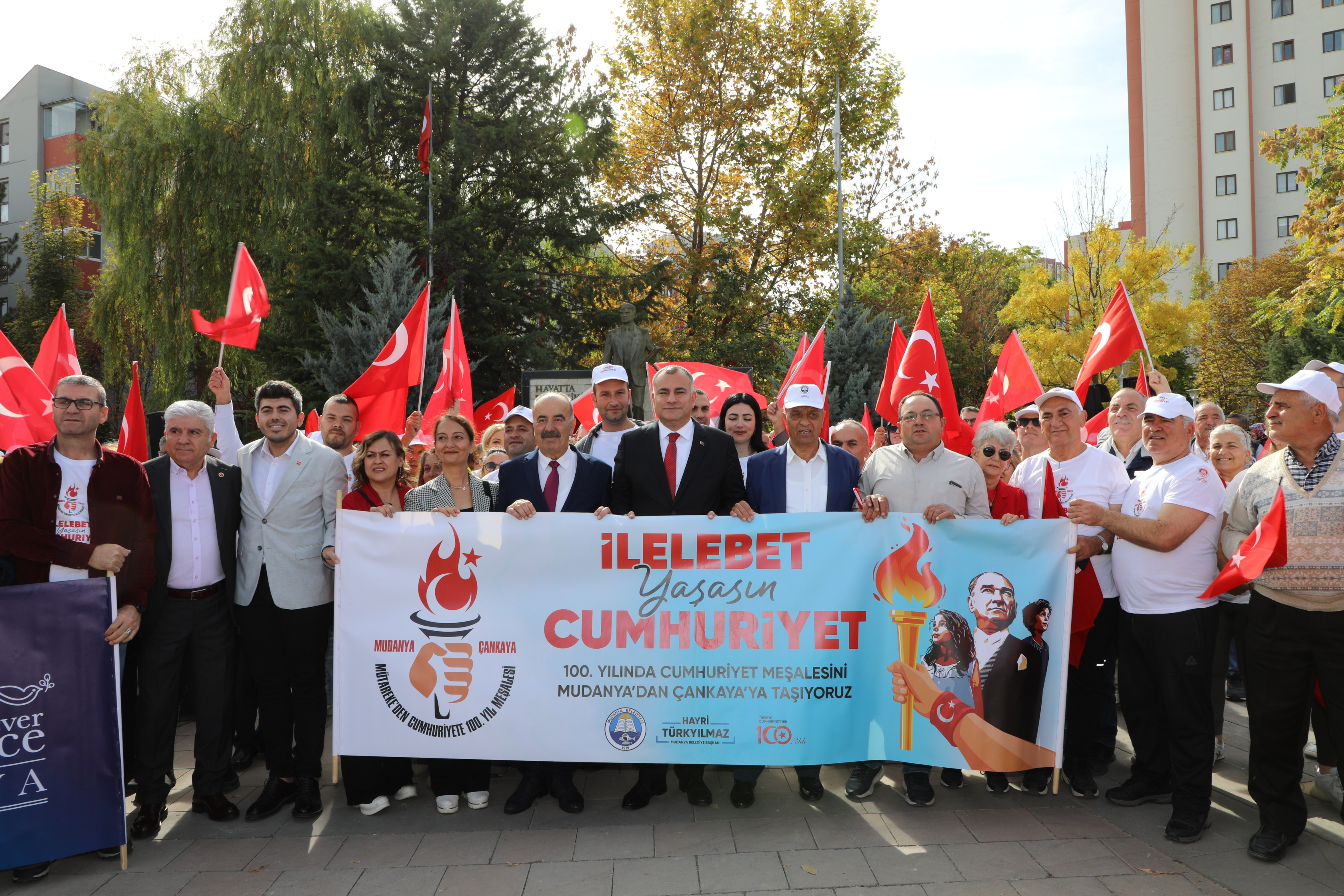 boyunca il ve ilçelerde belirlenen noktalarda Cumhuriyet meşalesini taşıyan sporcular Hasan Akyol, Yalçın Doğu, Cemalettin Suntur ve Nejat Çetin de toplamda 470 kilometre koştu. Başkan Hayri Türkyılmaz, Çankaya Belediye Başkanı Alper Taşdelen ile birlikte Atapark’ta Atatürk Anıtı’na çelenk sundu. Düzenlenen törenin ardından önce Kurucu Gazi Meclis ziyaret edildi. Meclis ziyaretinin ardından Mudanya Belediye Başkanı Hayri Türkyılmaz, Cumhuriyet yürüyüşünü Anıtkabir’de tamamladı. Mudanya’dan Ankara’ya 470 kilometre boyunca koşan sporculara ve güzergahtaki yürüyüş noktalarında kendisine eşlik eden herkese teşekkür eden Başkan Türkyılmaz, “Söz verdik, Cumhuriyetimizin 100. Yılında Ankara’ya coşkuyla yürüdük. Milletimizin birlik ve beraberliği, değerlerine olan bağlılığı ve geleceğe olan inancıyla yürüdük. Birlikte yürüdüğümüzde, daha güçlü, daha aydınlık bir Türkiye'nin kapılarını aralayacağımızı bir kez daha gösterdik. Bu yol Cumhuriyet yolu, Mustafa Kemal Atatürk’ün çizdiği çağdaş uygarlık yolu. Nice yıllara, Türkiye Cumhuriyeti! Her zaman daha aydınlık yarınlara yürüyeceğiz. Cumhuriyet yürüyüşümüzü Önderimiz, ülkemizin kurucusu, ebedi Başkomutanımız, 100 yılın en büyük devrimcisi Mustafa Kemal Atatürk'ün huzurunda tamamladık. O’nun büyük önderliği sayesinde, Türkiye Cumhuriyeti demokrasi, laiklik, eşitlik ve adalet ilkeleriyle şekillendi. Bu değerlere olan bağlılık, milletimizin ortak paydası. Cumhuriyetimizin 100. yılında, Atamızın huzuruna yürümek, onun mirasına olan bağlılığımızı ve minnettarlığımızı göstermek bizler için büyük bir onur. Her zaman, Atamızın izinde, onun yolundan ilerleyecek, ‘İlelebet Cumhuriyet’ diyeceğiz” İfadelerini kullandı.