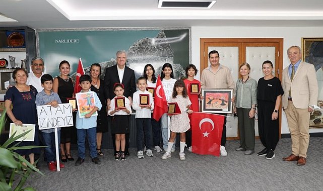 İzmir'de Narlıdere Belediyesi'nin açtığı resim kurslarında eğitim gören çocuklar, Cumhuriyetimizin 100.yılında katıldıkları uluslararası yarışmalardan 7 dünya birinciliği ve çeşitli ödüllerle döndü.İZMİR (İGFA) - Cumhuriyetimizin 100.yılında katıldıkları uluslararası yarışmalardan 7 dünya birinciliği ve çeşitli derecelerle dönen Narlıdere Belediyesi Çocuk Resim Kursu öğrencileri, Narlıdere Belediye Başkanı Ali Engin'i ziyaret etti. Ödül alan başarılı öğrencileri ve ailelerini makamında ağırlayan Başkan Engin, çocukları tek tek tebrik ederek başarılarının devamını diledi.38 ülkeden dünya çocuklarının katıldığı yarışmalardan ödüllerle dönen ve 'Ata'mızın İzindeyiz' pankartıyla Başkan Engin'i ziyaret eden minik yetenekler, Türkiye'nin adını duyurmaktan gurur duyduklarını ifade etti.Başkan Ali Engin, Belediyenin açtığı resim kurslarına katılan ve ülkemizi uluslararası yarışmalarda başarıyla temsil eden kursiyer öğrencileri tebrik ederek, "Çocuklarımız duygularını, uçsuz bucaksız hayal güçlerini resimlerle yansıtabiliyorlar. Pablo Picasso'nun 'Bir çocuk gibi resim yapmak bütün ömrümü aldı' sözünden onların yaptıkları resimlerin ne kadar eşsiz olduklarını anlayabiliriz. Narlıdere Belediyesi olarak çocuklarımızın hayallerinin peşinden gitmesini her zaman destekliyoruz. Cumhuriyetimizin 100.yılında katıldıkları uluslararası yarışmalardan ödüllerle dönen evlatlarımızı, ailelerini ve hocaları Feraye Taşkıran'ı tebrik ediyorum. İnanıyoruz ki çocuklarımız elde edecekleri yeni başarılarla bizleri gururlandırmaya devam edecek" dedi.ÖDÜL LİSTESİMila Yılmaz – Picasso Star Artist Ödülü (Birincilik)Sarp Doğanoğlu – Frogs Are Green (Birincilik)Kuzey Gülcan – Bitola, Makedonya Picasso (Birincilik)Naz Derin Nalbantoğlu – İmaj, Fransa Picaso Start Artist Ödülü (Birincilik)İris Şanlıtürk – İmaj, Fransa Centre Pour Unesco (Birincilik)Zürmre Nur Orhan - İmaj Centre Pour Unesco (Birincilik)Zeynep Özben – Türk Kültür ve Miras Vakfı (Birincilik)