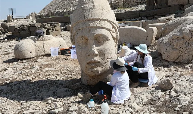 Kültür ve Turizm Bakanlığı, Nemrut Dağı'ndaki kolosal heykelleri nano teknolojiyle koruma altına alıyor. 5 yıllık projeyle güçlendirilen eserler, gelecek nesillere aktarılacak. İlk etap 3 haftada tamamlandı.ADIYAMAN (İGFA) - Nemrut Dağı'nın zirvesindeki binlerce yıllık dev heykeller, Kültür ve Turizm Bakanlığı'nın sağlamlaştırma projesiyle yeni bir döneme adım attı.Doğu ve Batı teraslarındaki eserler, ilk kez uygulanan nano teknoloji yöntemleriyle korunuyor.Bakan Mehmet Nuri Ersoy, sosyal medya hesabından yaptığı paylaşımda, projenin çağın en ileri teknikleriyle yürütüldüğünü ve ilk etap çalışmaların 3 haftada tamamlandığını duyurdu. Nemrut'un binlerce yıllık mirasını geleceğe taşıdıklarını ifade eden Bakan Ersoy, "Bu proje, insanlık tarihinin sessiz tanıklarını gelecek yüzyıllara güvenle emanet edecek" dedi.https://twitter.com/MehmetNuriErsoy/status/1958432764673372195NANO TEKNOLOJİYLE KALICI KORUMA7-27 Temmuz 2025 tarihlerinde Adıyaman Müze Müdürlüğü'nden bir uzman ve altı restoratörün katılımıyla gerçekleştirilen çalışmalarda, Antiochos ve Kartal başları ile Batı terasındaki iki kumtaşı rölyef güçlendirildi. Kireçtaşı eserlerde nano kalsiyum hidroksit çözeltisiyle taş dokusu sağlamlaştırıldı, çatlaklar hidrolik kireç bağlayıcı estetik harçla kapatıldı.Kumtaşı eserlerde ise nano etil silikat çözeltisi kullanılarak su geçirmezlik sağlandı. Apollon heykelinin başlık kısmı, geçmişte ayrılan parçalarının kalıcı olarak birleştirilmesiyle yeniden bütünlüğüne kavuştu.