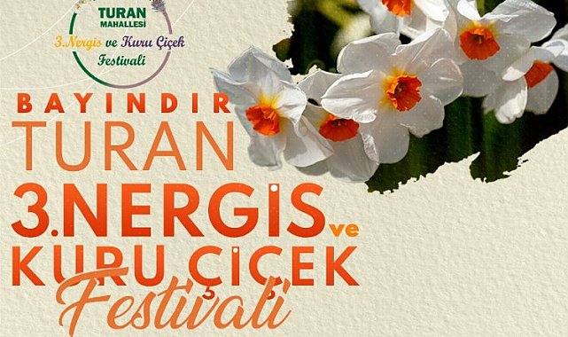 Festivaller şehri Bayındır'da 4 Şubat 2024 Pazar günü Turan Mahallesi'nde 3. kez düzenlenecek Bayındır Turan Mahallesi Nergis ve Kuru Çiçek Festivali Bayındır'daki çiçek üretiminin çeşitliliği ve ilçenin sektördeki konumunu göstermesi bakımından oldukça önemli kabul ediliyor.İZMİR (İGFA) - Bu sene 3. kez kez düzenlenecek Bayındır Turan Mahallesi Nergis ve Kuru Çiçek Festivali 4 Şubat Pazar günü Turan Mahallesi meydanında gerçekleşecek ve saat 13.00'de başlayacak. Halk oyunları gösterisi ve çeşitli etkinliklerin de yapılacağı festival saat 16.30'da sahne alacak Elif Buse Doğan konseri ile son bulacak.