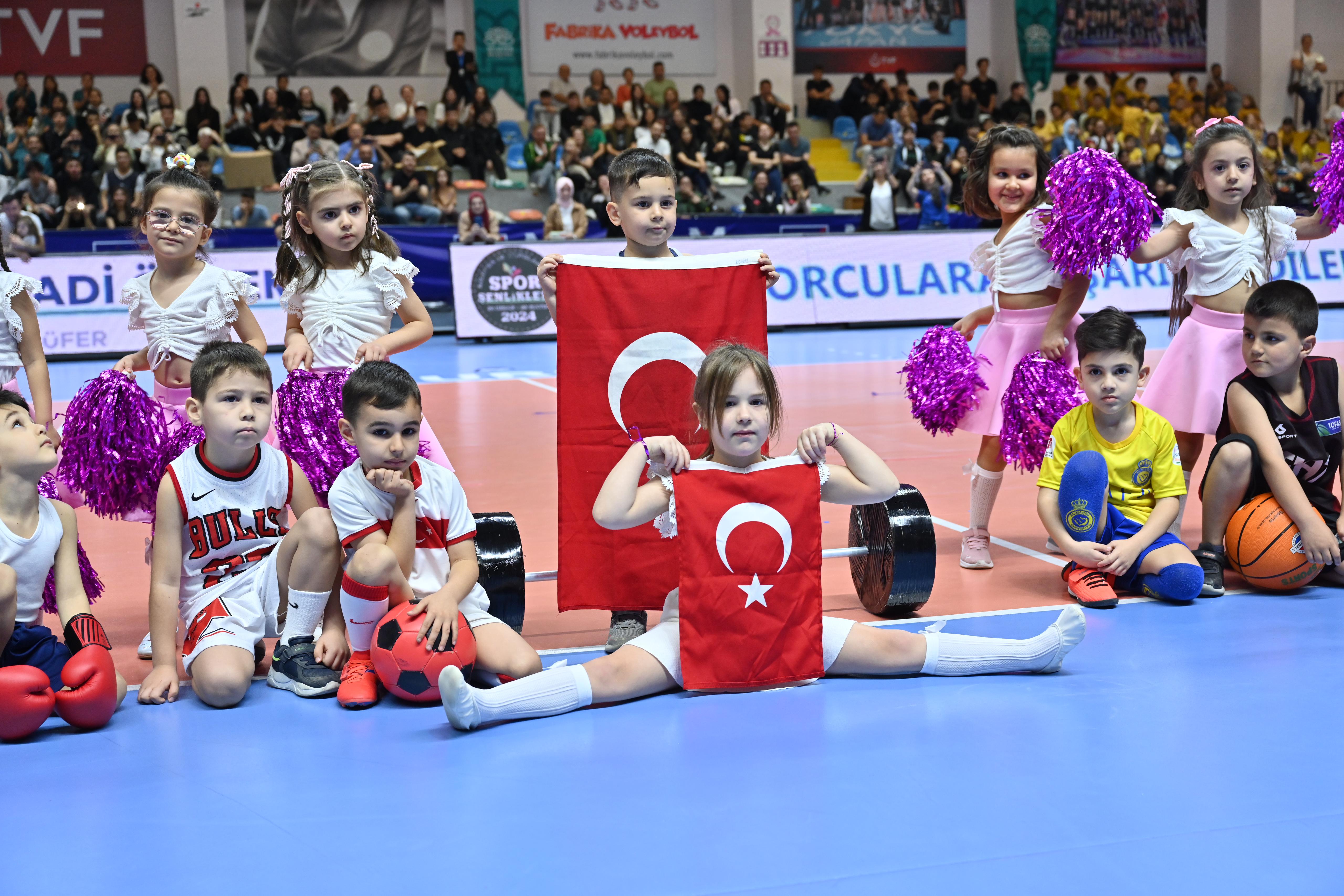 Konuşmaların ardından 22. Nilüfer Uluslararası Spor Şenlikleri açılış töreni minik sporcuların branş ve dans gösterileriyle devam etti.