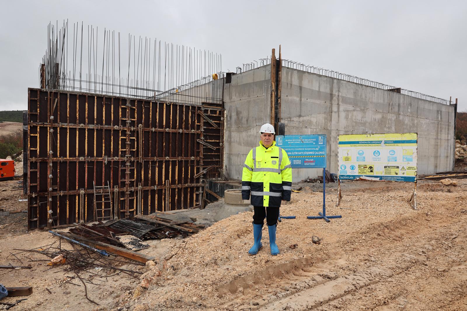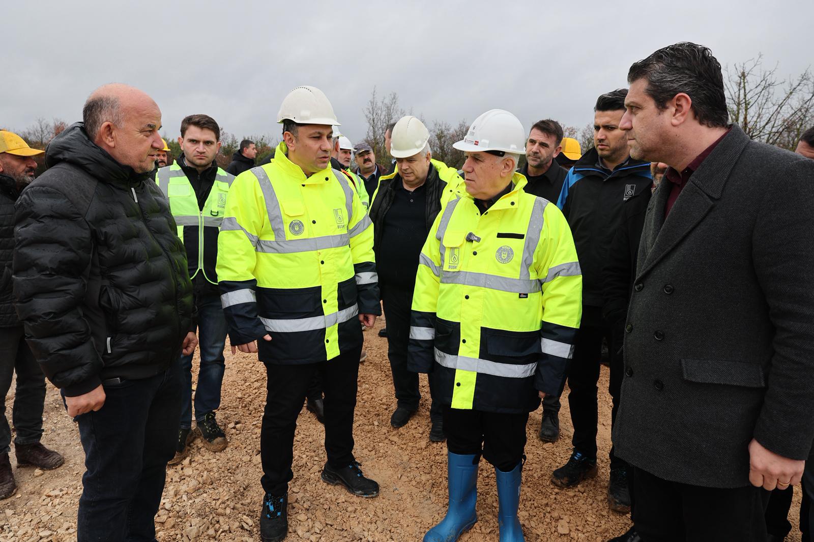 Bursa Büyükşehir Belediye Başkanı Mustafa Bozbey, inşaat alanını ziyaret ederek BUSKİ Genel Müdürü Mehmet Ercihan Subaşıoğlu ve diğer yetkililerden bilgi aldı.
