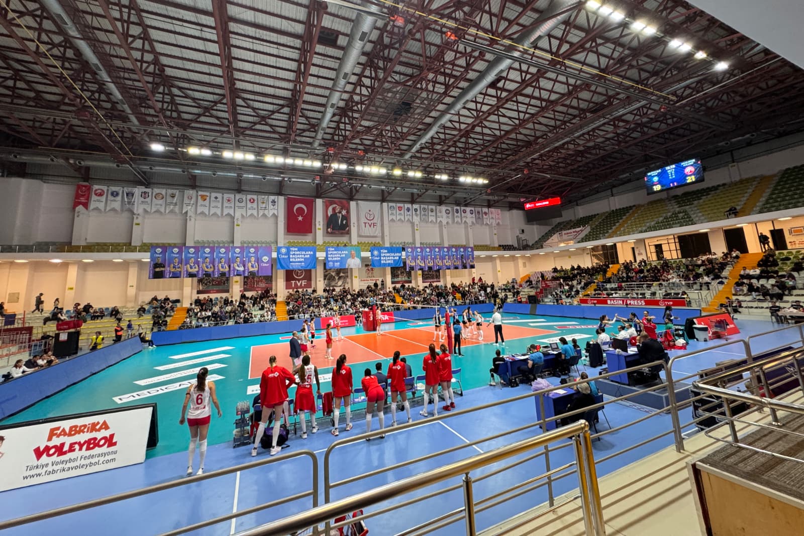 Voleybol Salonu’nda Aras Spor’u ağırladı. Maça iyi başlayamayan ev sahibi ekip, ilk seti 25-13’lük skorla konuk ekibe verdi.