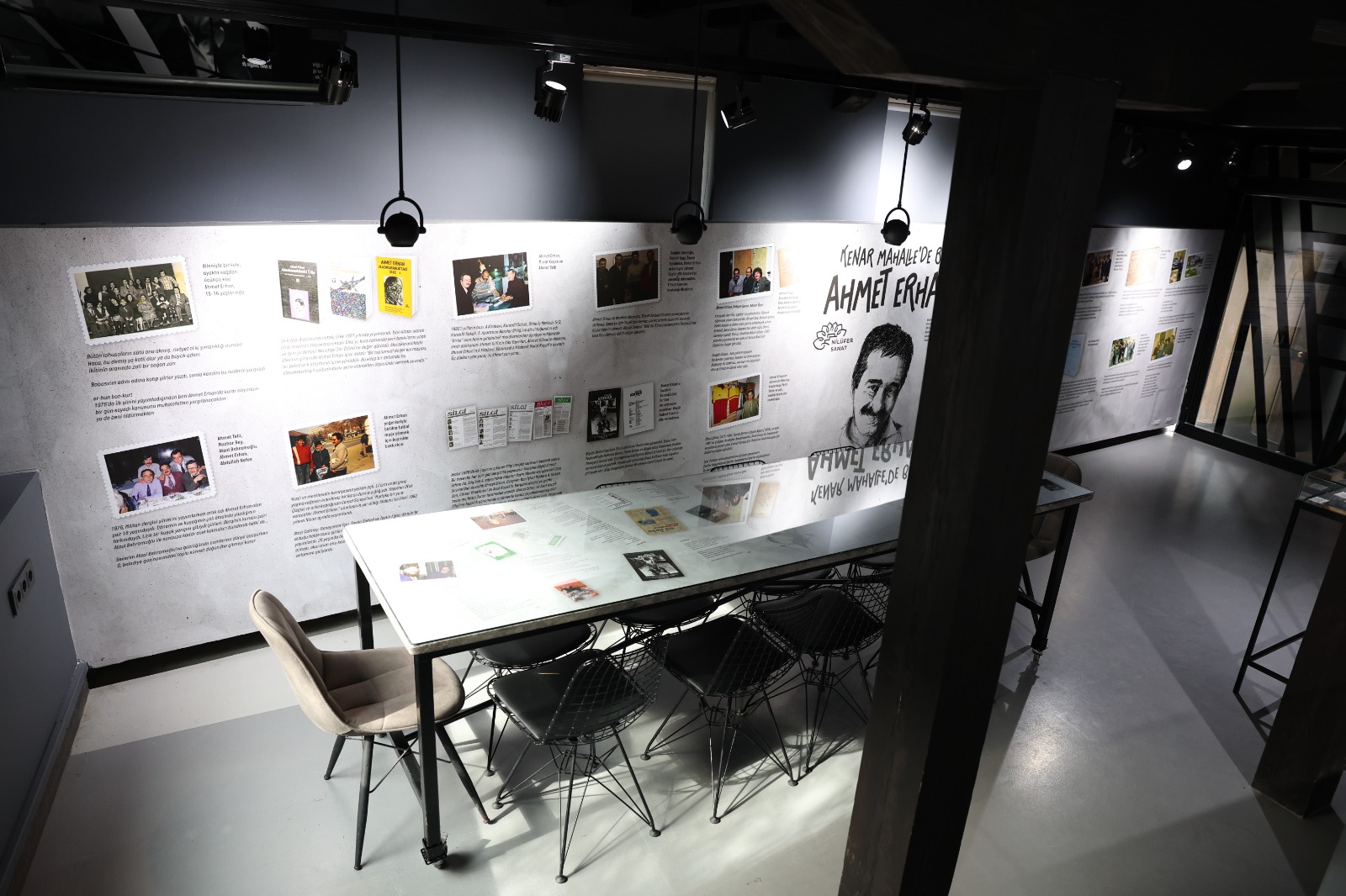 “Kenar Mahallede Bir Ahmet Erhan” sergisi, şairin dünyasına görsel bir yolculuk sunuyor. Küratörlüğünü C. Hakkı Zariç’in üstlendiği sergide; Ahmet Erhan’ın kitaplarının ilk baskıları, kişisel fotoğrafları, mektupları ve özel eşyaları sergileniyor.