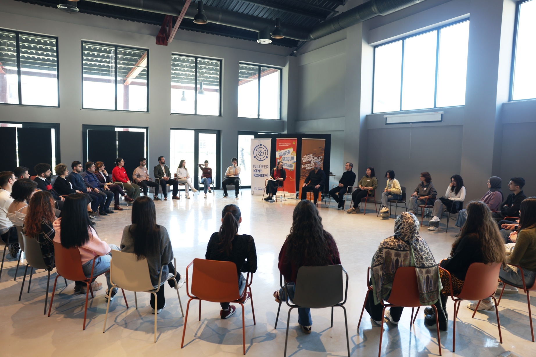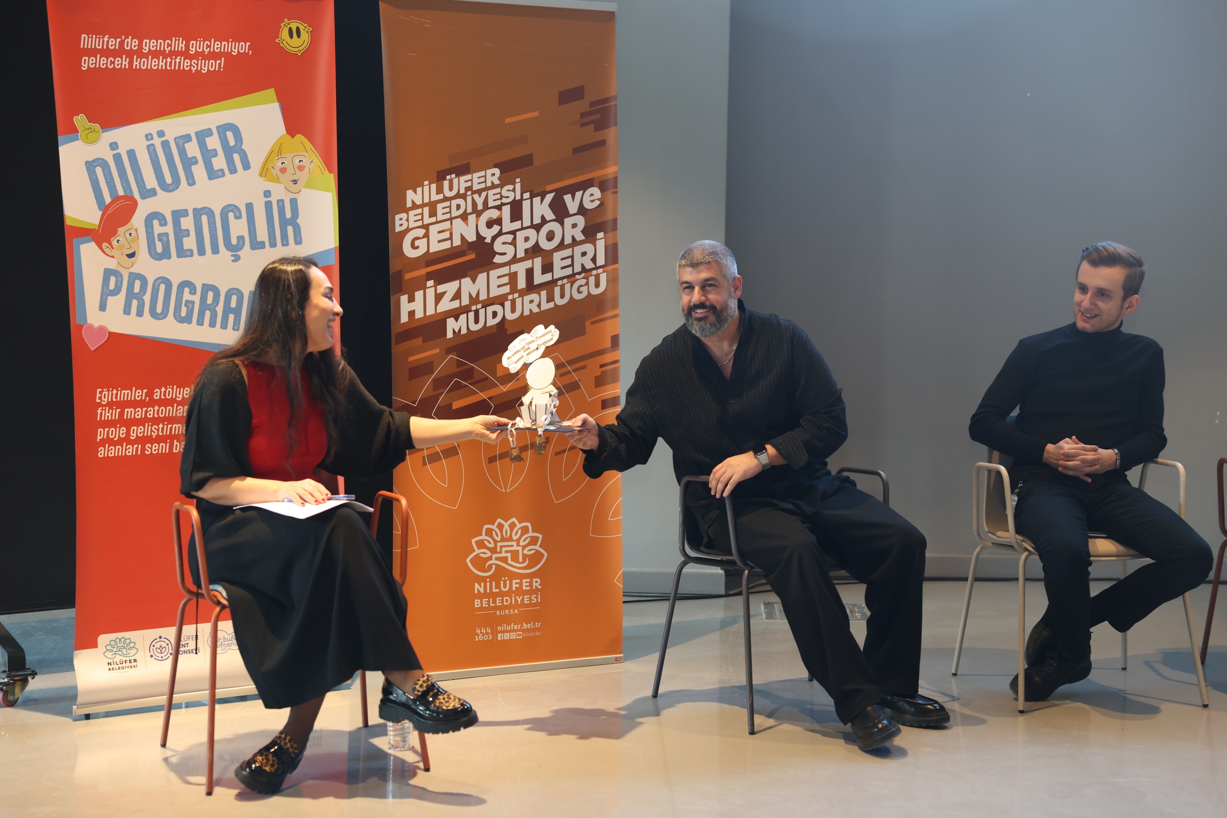 Atölyelerin ardından gerçekleştirilen söyleşi bölümünde, etkinliğe katılan Nilüfer Belediye Başkan Yardımcısı Emre Karagöz ve Nilüfer Belediye Başkanı Şadi Özdemir’in eşi Nuray Özdemir, gençlerle bir araya gelerek soru ve taleplerini dinledi. Gençler hem merak ettikleri konuları sordu hem de kente dair öneri ve taleplerini paylaştı.