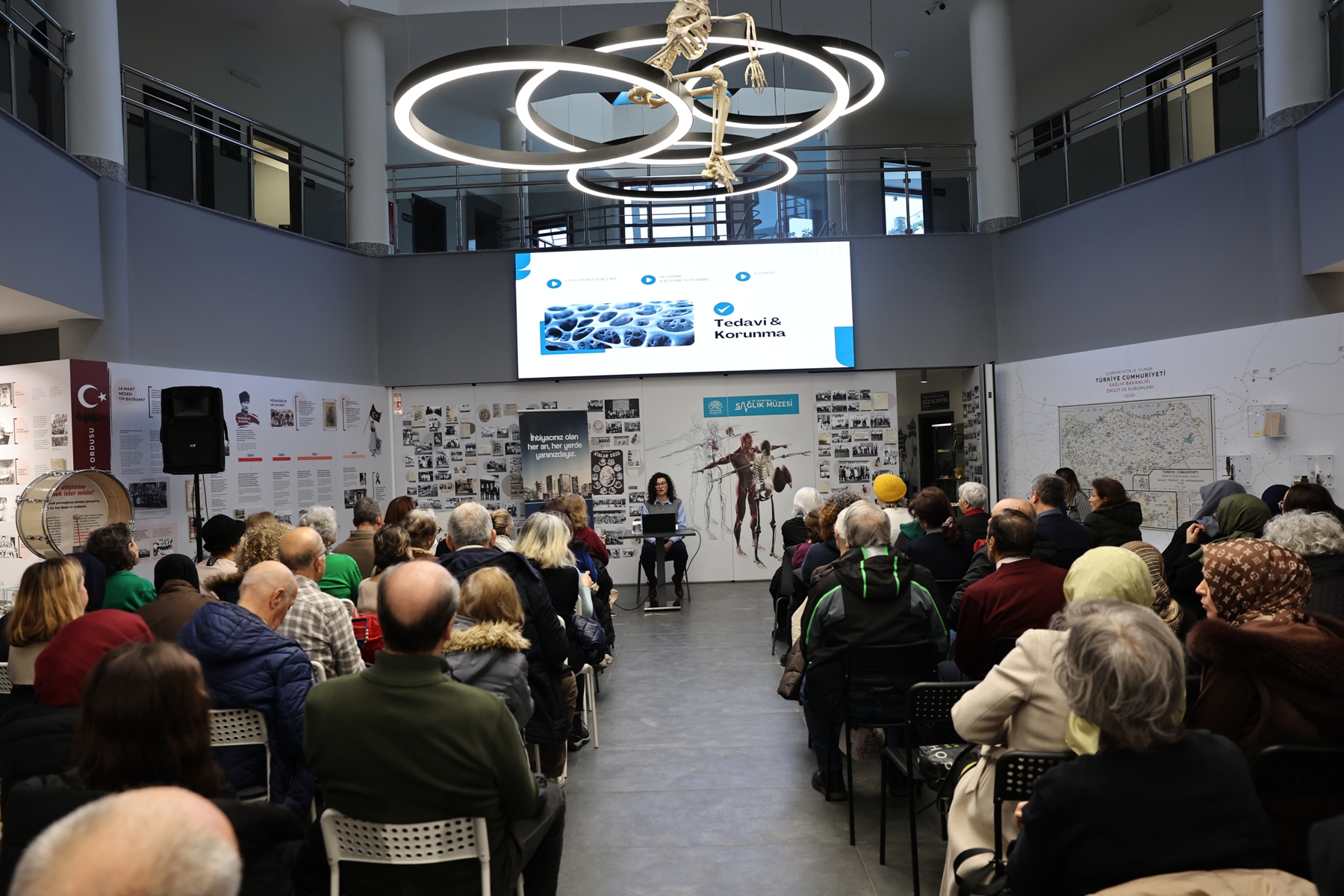Söyleşide konuşan Uzman Dr. Büşra Yeşil, osteoporozun yani kemik erimesinin sessiz ilerleyen bir rahatsızlık olduğunu vurguladı. Dr. Yeşil, hastalığın önlenebilir yönlerine dikkat çekerek beslenme ve egzersiz önerilerinde bulundu.