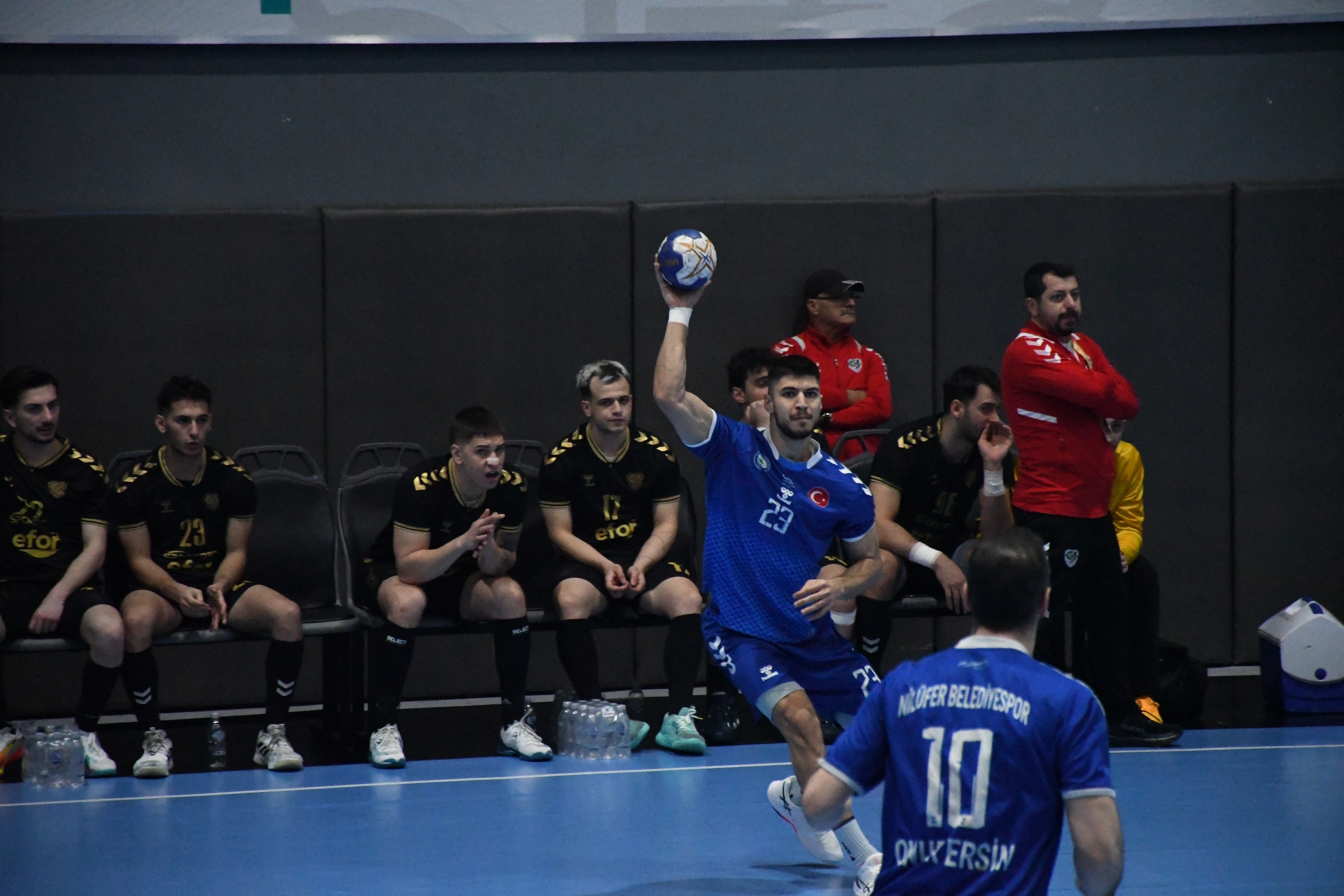 Nilüfer Belediyespor Erkek Hentbol Takımı, Ardventure Erkekler Süper Ligi 23. hafta erteleme mücadelesinde sahasında ağırladığı Güneysuspor Kulübü’u 36-29 mağlup ederek zirve takibini sürdürdü. Bu sonuçla puanını 36’ya yükselten Bursa temsilcisi, ligde ikinci sıradaki yerini korudu.