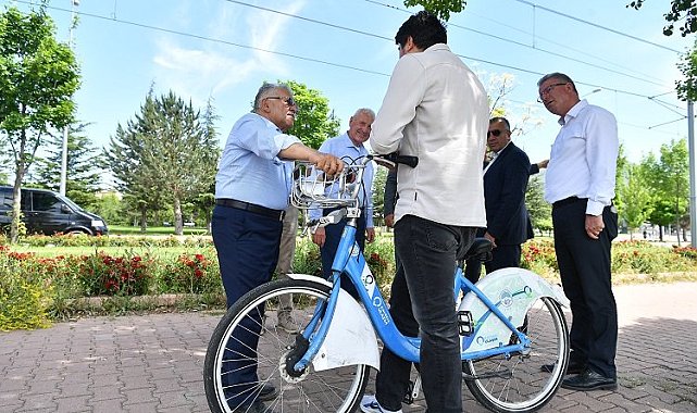 Kayseri Büyükşehir Belediye Başkanı Dr. Memduh Büyükkılıç, Büyükşehir Belediyesi öncülüğünde 'çevreci bir ulaşım ağı' oluşturabilmek için Kayseri Ulaşım A.Ş. tarafından hayata geçirilen ve Kaybis'i kullanan bir öğrenci ile sıcak ve samimi sohbet gerçekleştirdi. Erciyes Üniversitesi'nde okuyan öğrenci, Başkan Dr. Memduh Büyükkılıç'a Kaybis'den çok memnun olduklarını ifade ederek, teşekkür etti. Mehmet UZEL / KAYSERİ (İGFA) - Kayseri Büyükşehir Belediyesi 'öğrenci dostu' hizmet anlayışıyla hizmetlerine devam ederken, Büyükşehir Belediye Başkanı Dr. Memduh Büyükkılıç da gençlerin her zaman yanında yer almaya ve gençlerle bir araya gelmeye devam ediyor. Bu kapsamda Başkan Büyükkılıç, Erciyes Üniversitesi'nde Kaybiskullanan bir genci görünce, öğrencinin yanına giderek sohbet etti. Kaybis'i çok sevdiklerini ve böyle bir uygulamanın Kayseri'de olduğu için çok şanslı olduklarını ifade eden üniversite öğrencisi genç, Kaybis uygulaması için Başkan Büyükkılıç'a teşekkürlerini iletti. Başkan Büyükkılıç, Türkiye'nin ilk bisiklet paylaşım sistemi olan Kaybis'in sezonu açtığını ve çevreci, sağlıklı ulaşım aracı olan, Kayseri'nin gururu Kaybis'in, istasyon ve bisiklet sayısını arttırdığını dile getirdi. Kayseri'nin bisiklet şehri olduğunu ifade eden Başkan Büyükkılıç, "84 istasyon ve 1000 bisiklet olarak vatandaşlarımız kullanabiliyor. Kayseri gelişen sanayisi, mükemmel altyapısı, modern çarşıları, yolları, parkları, meydanlarıyla Türkiye'nin geleceğe yatırımlarından biri olan şehir olarak ön plana çıkıyor. Bu projelerin devamı da gelecek" diye konuştu.Büyükşehir Belediye Başkanı Dr. Memduh Büyükkılıç, bir süre Kaybis'e binerek, pedal çevirmeyi de ihmal etmedi.