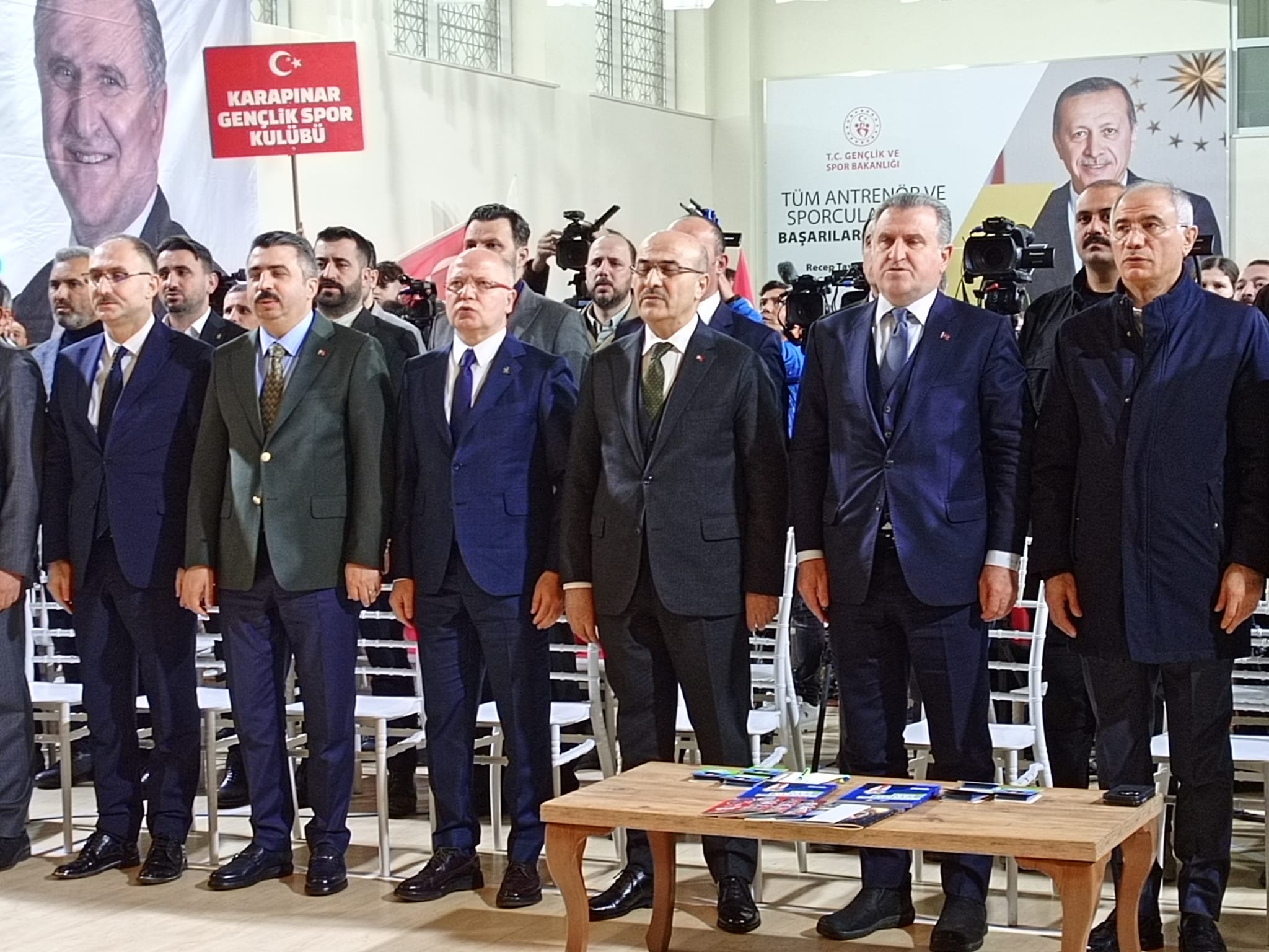 Yıldırım Gençlik Merkezi açılımı öncesinde başta Mustafa Kemal Atatürk olmak üzere bütün aziz şehitlerimiz için saygı duruşunda bulunulurken İstiklal Marşımız okundu.