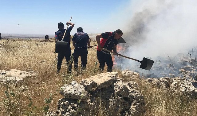 Mardin Büyükşehir Belediyesi itfaiye ekipleri, merkez Artuklu ilçesinde çıkan yangın kontrol altına alındı. Şehmus EDİS / MARDİN (İGFA) - Henüz bilinmeyen bir nedenden dolayı merkez Artuklu ilçesi Çağlar-Açar kırsal Mahalleleri arasında bulunan ormanlık alanda yangın çıktı. Haber verilmesi üzerine, Mardin Büyükşehir Belediyesi İtfaiye Daire Başkanlığı ekipler başta olmak üzere jandarma, AFAD, Orman Şube Amirliğine bağlı itfaiye ekipleri yangın yerine intikal etti. Köylülerinde destek verdiği yangın söndürme çalışmaları, yangının çıktığı alanın dağlık olması nedeniyle yangın söndürme yangın söndürme araçları ilerleyemedi. Patpt araçlarla çalışmalarda ilerleme sağlandı. Sabah saat 07.30 sularında başlayan yangın 13.00'te kontrol altına alındı.