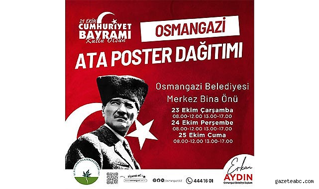 Osmangazi Belediyesi, 29 Ekim Cumhuriyet Bayramı dolayısıyla vatandaşlara Ata Posteri dağıtacak.