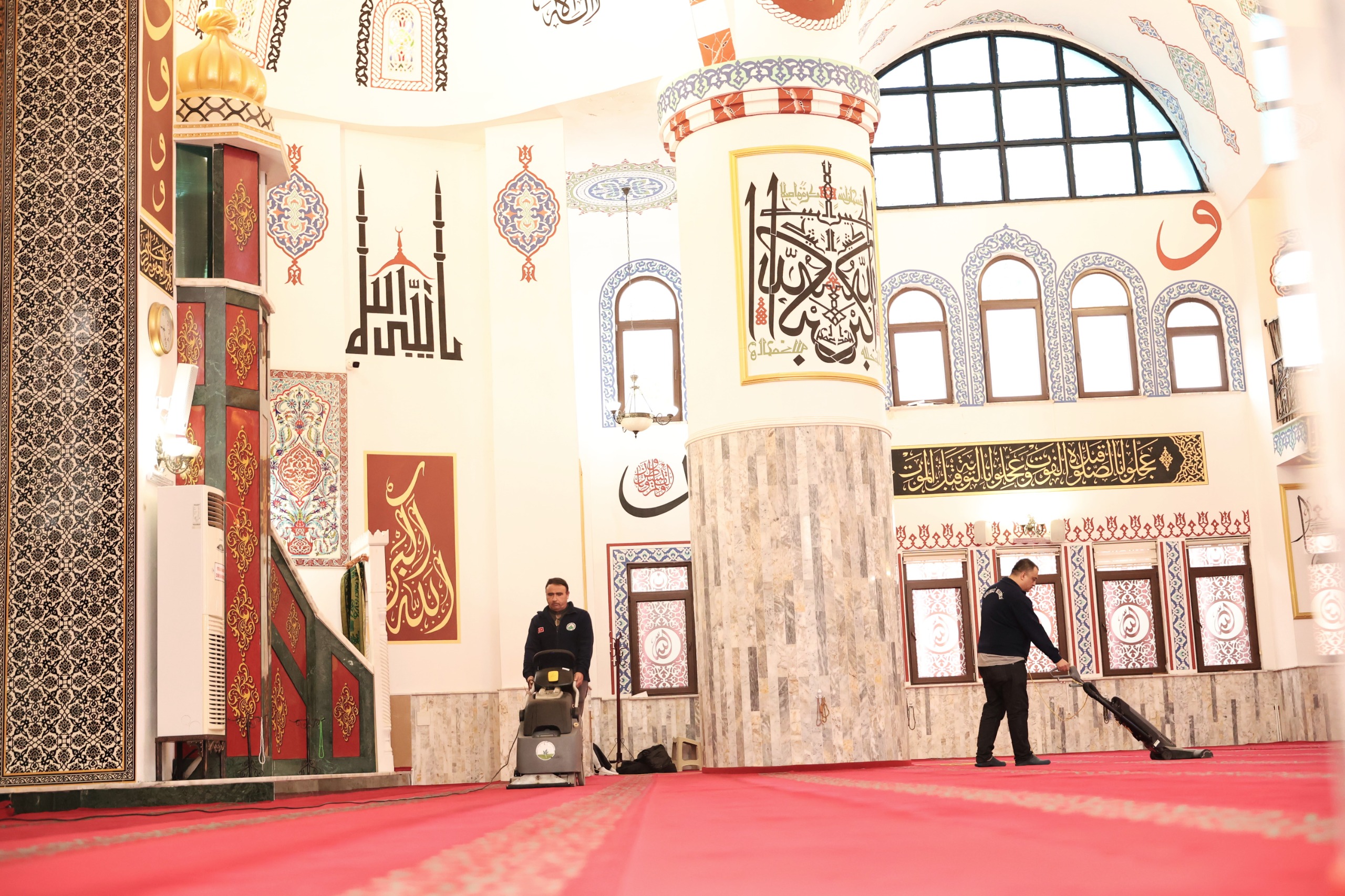 Osmangazi Belediyesi Temizlik İşleri Müdürlüğü ekipleri, camilerdeki halıları özel halı yıkama makineleri ve deterjanlı suyla temizlerken; pencere, kapı, mihrap, minber, kürsü ve ayakkabılıklar büyük bir özenle siliniyor. Halılar, yüksek teknolojiye sahip makinelerle yıkanırken aynı zamanda bakterilere karşı dezenfekte ediliyor. Yıkama işleminden sonra güçlü vakum sistemiyle kirli su tahliye edilerek ibadethaneler hijyenik bir hale getiriliyor.