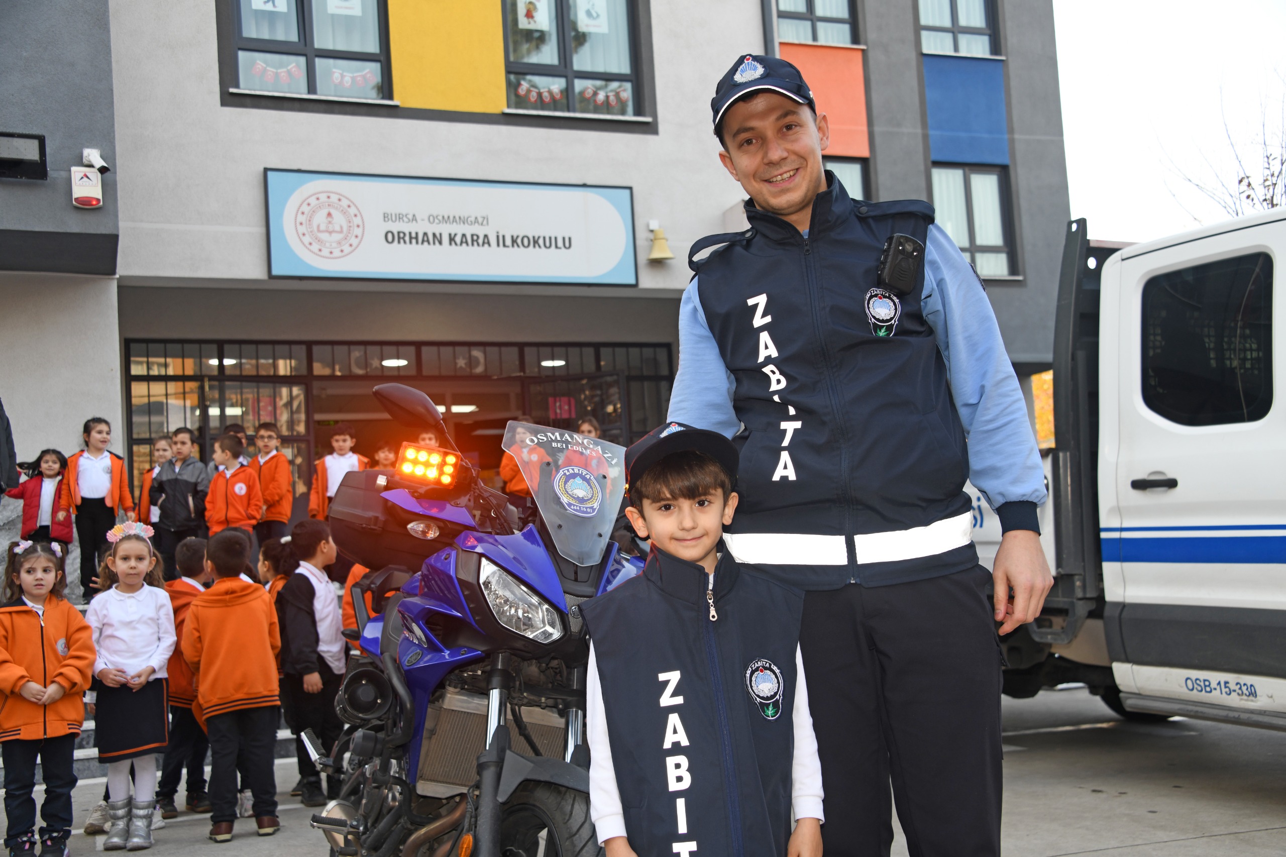 İlk kez telsizle konuşmanın heyecanını yaşayan çocuklar, kısa süreliğine de olsa kendilerini gerçek bir zabıta gibi hissetti. Osmangazi Belediyesi Zabıta Müdürlüğü ekipleri, etkinlik sonunda öğrencilere boyama kitabı hediye etti.