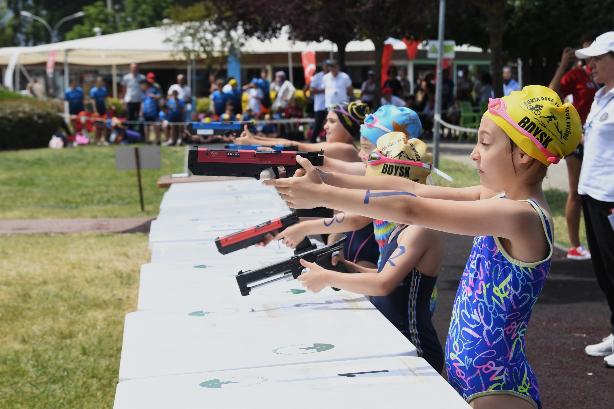 Triathle, Biathle ve 4. Bölge 2. Etap Akuatlon, müsabakalarının startı Triathle yarışlarıyla verildi. Bursa, Ankara, Konya, İstanbul ve Balıkesir’den 11 takımdan oluşan 9-17 yaş arası 180 sporcunun katıldığı Triathle yarışları 3 branş, 6 kategoride gerçekleşti. Sporcular koşu, yüzme ve atış olmak 3 branşta tüm hünerlerini sergilerken aileleri de büyük heyecan yaşadı. Sukaypark Tesisleri’nde düzenlenen yarışlar 22-23 Haziran tarihlerinde Biathle ve 4. Bölge 2. Etap Akuatlon, müsabakalarıyla devam edecek. Triathle yarışlarında dereceye giren sporcuların madalyaları Osmangazi Belediyespor Başkanı Fatih Karayılan, tarafından verildi.