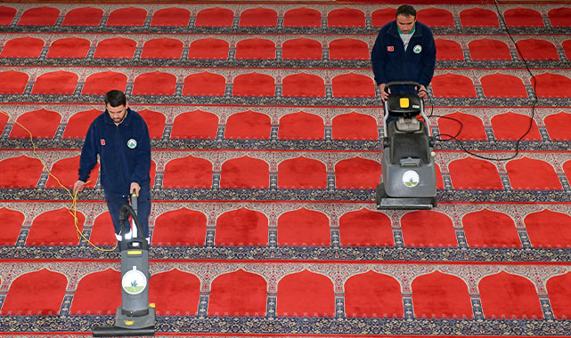 kurallarına uygun olarak temizleniyor. Ayrıca camilerin avizeleri, pencereleri, mihrap,