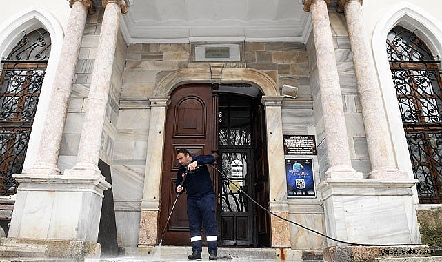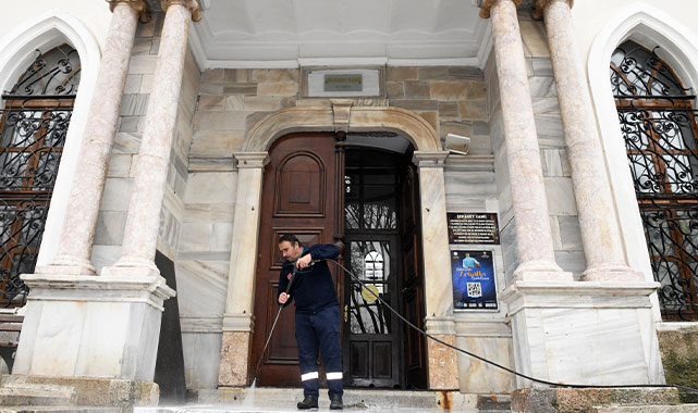 dezenfekte ediliyor. Cami bahçeleri, şadırvanlar, abdesthaneler ve tuvaletler de hijyen