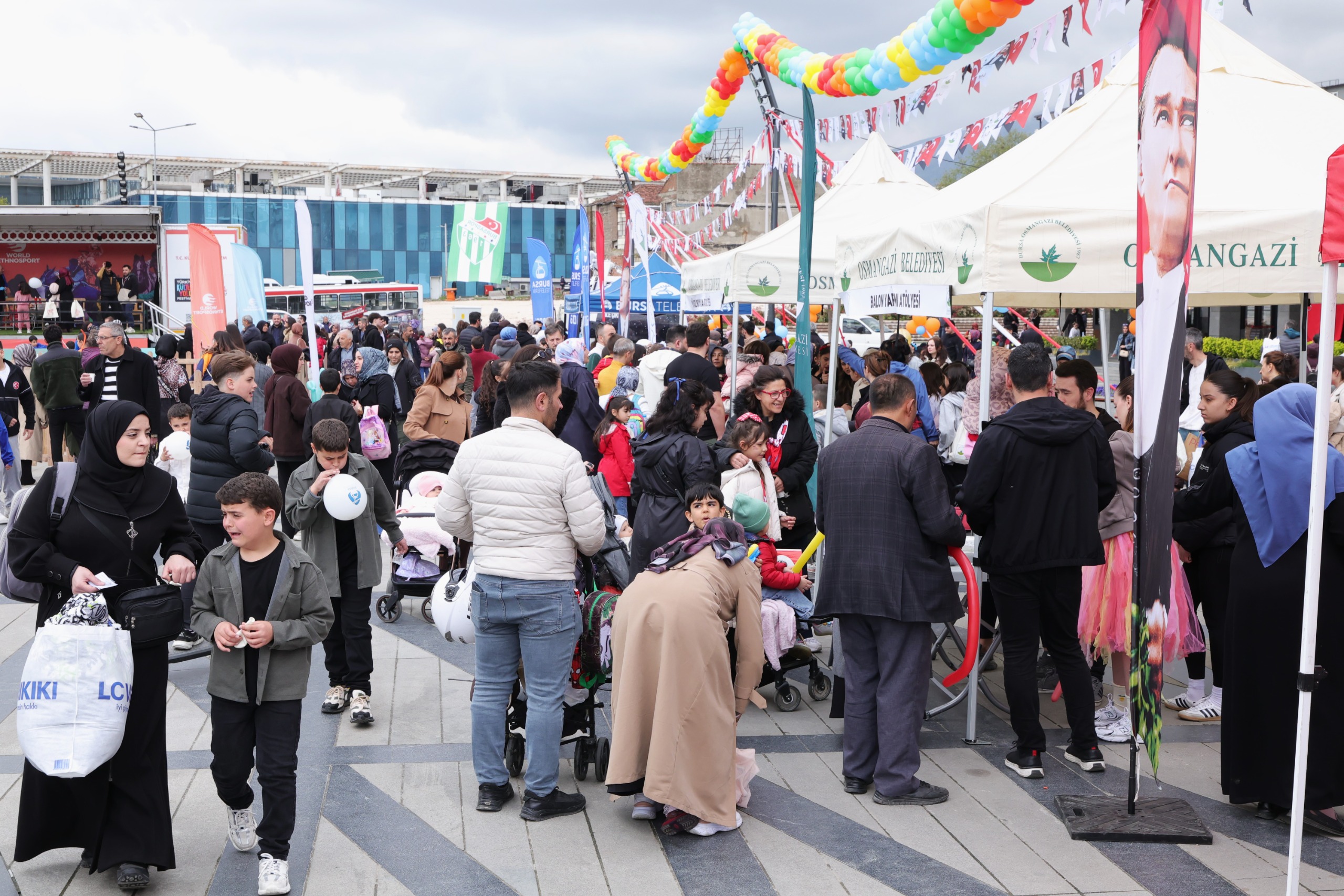 Osmangazi Belediyesi, Gazi Mustafa Kemal Atatürk’ün çocuklara armağan ettiği 23 Nisan Ulusal Egemenlik ve Çocuk Bayramı kapsamında düzenlediği etkinliklerle Osmangazili çocuklara unutulmaz bir bayram coşkusu yaşattı. Osmangazi Meydanı’nda kurulan renkli etkinlik alanları, bayram sevincini doruğa taşıdı.