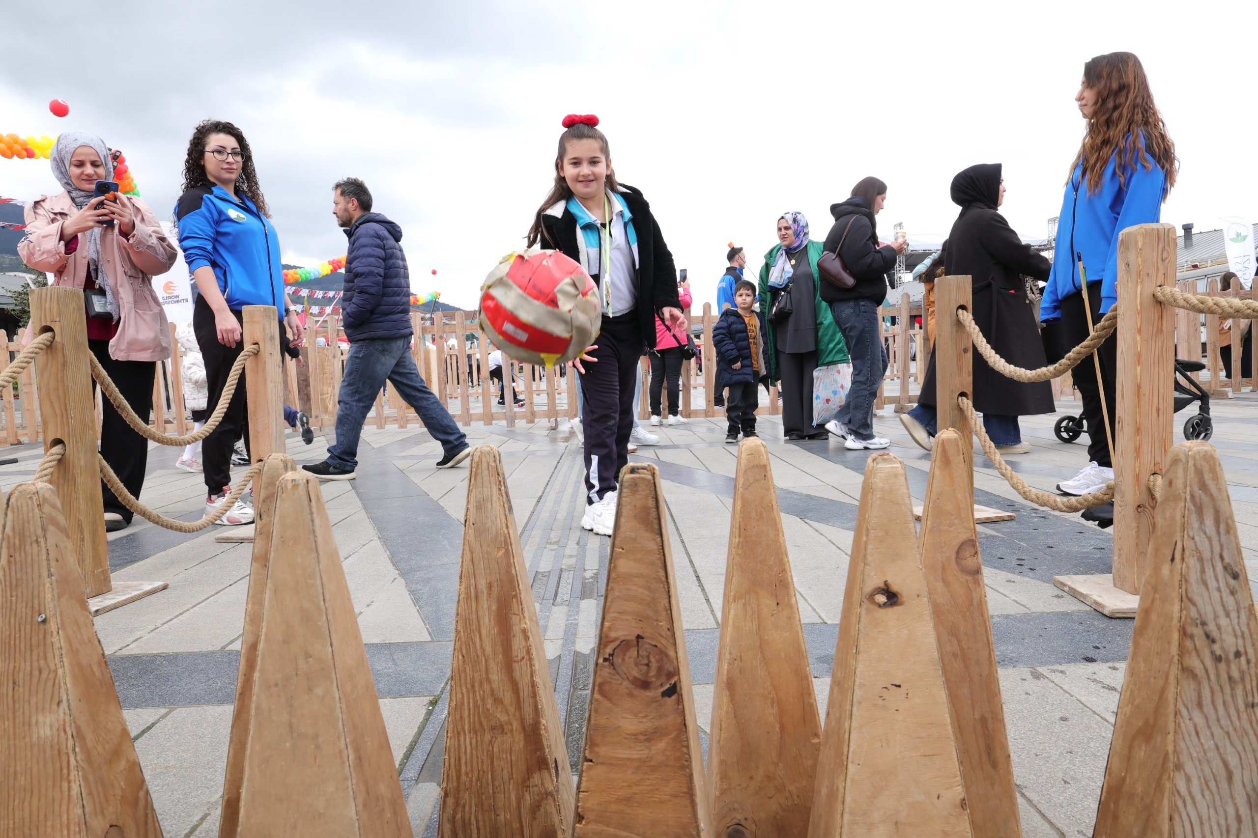 Bayram için özel olarak hazırlanan meydan, rengarenk süslemeler ve farklı etkinlik alanlarıyla adeta bir çocuk festivaline dönüştü.