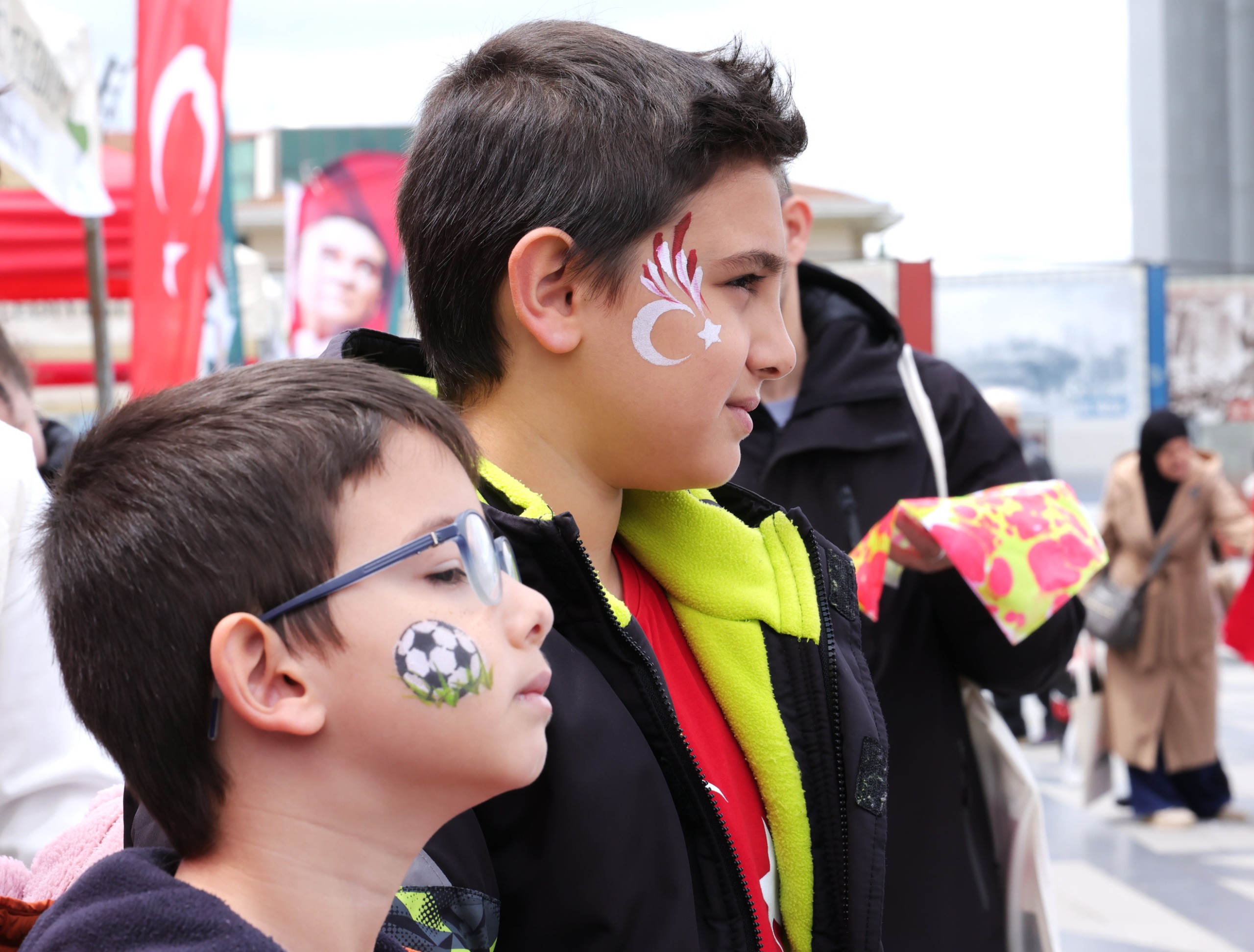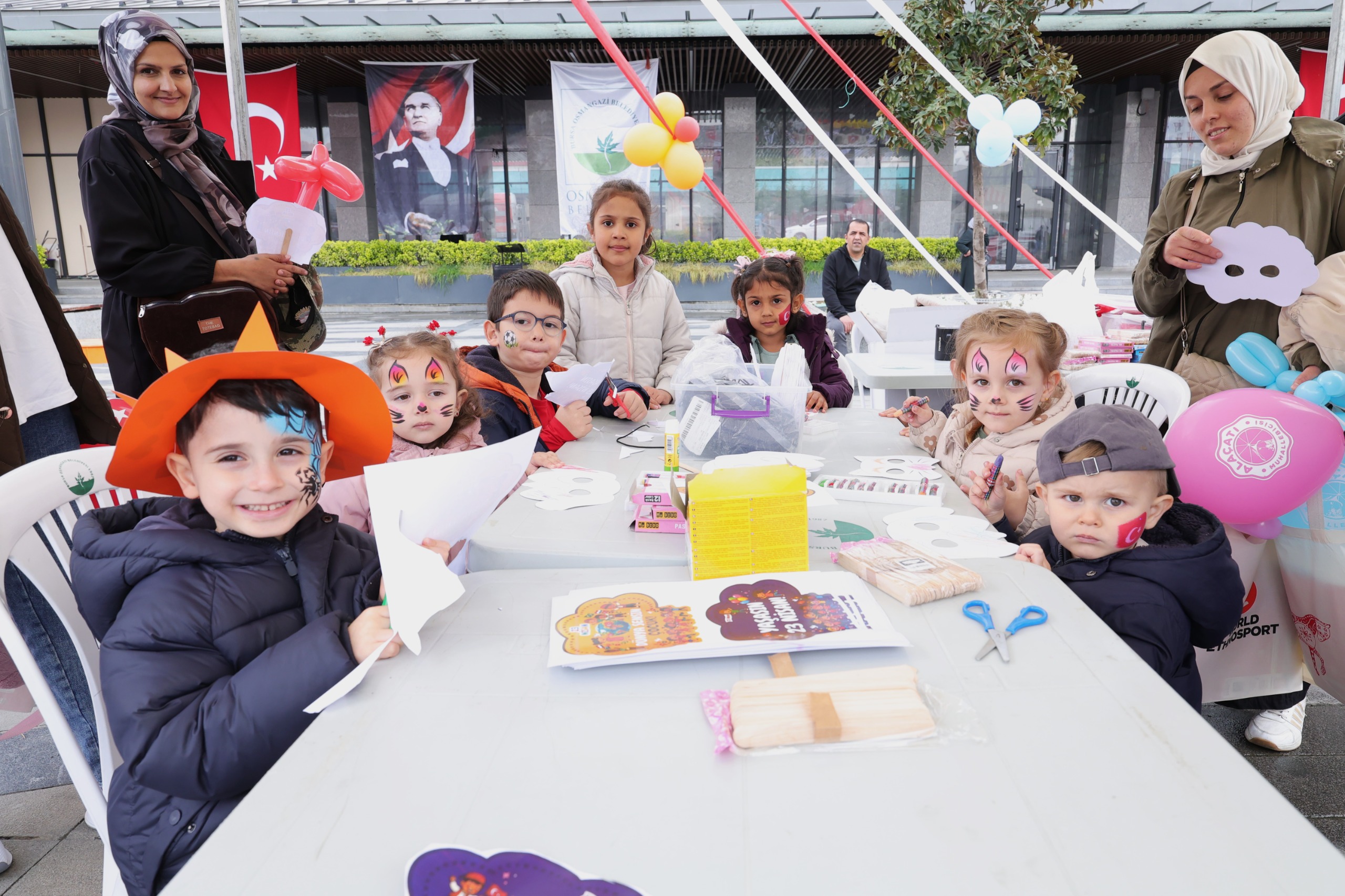 Etkinlik kapsamında kurulan alanlarda yüz boyama, satranç, balon yapımı, renkli şapka tasarımı ve resim atölyeleri büyük ilgi gördü.