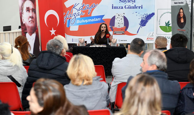 edebiyatseverler için imzaladı. Programa katılan Osmangazi Belediye Başkan Yardımcısı Mutlu Esendemir, yazar Açıkalın’a teşekkür çiçeği takdim etti.